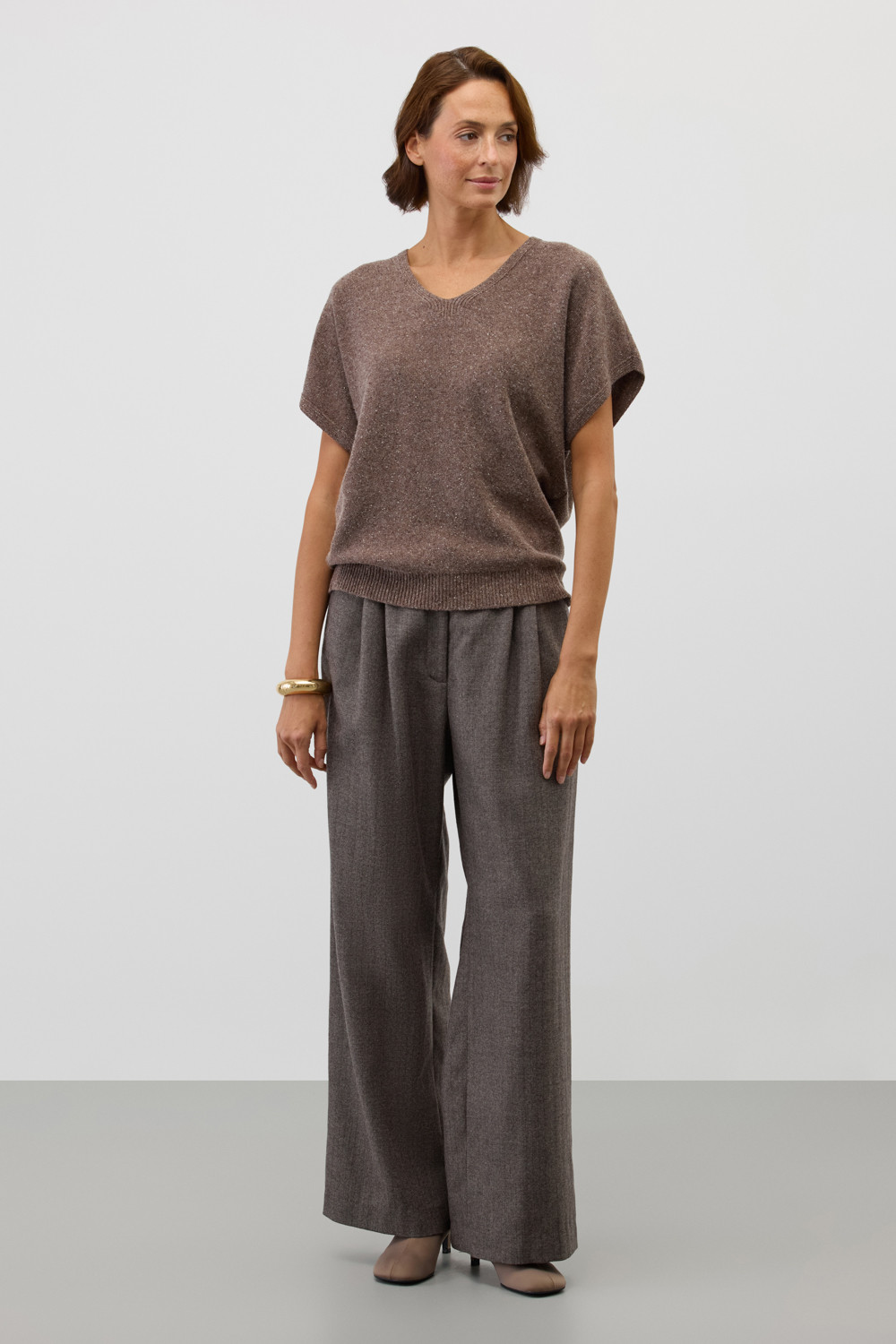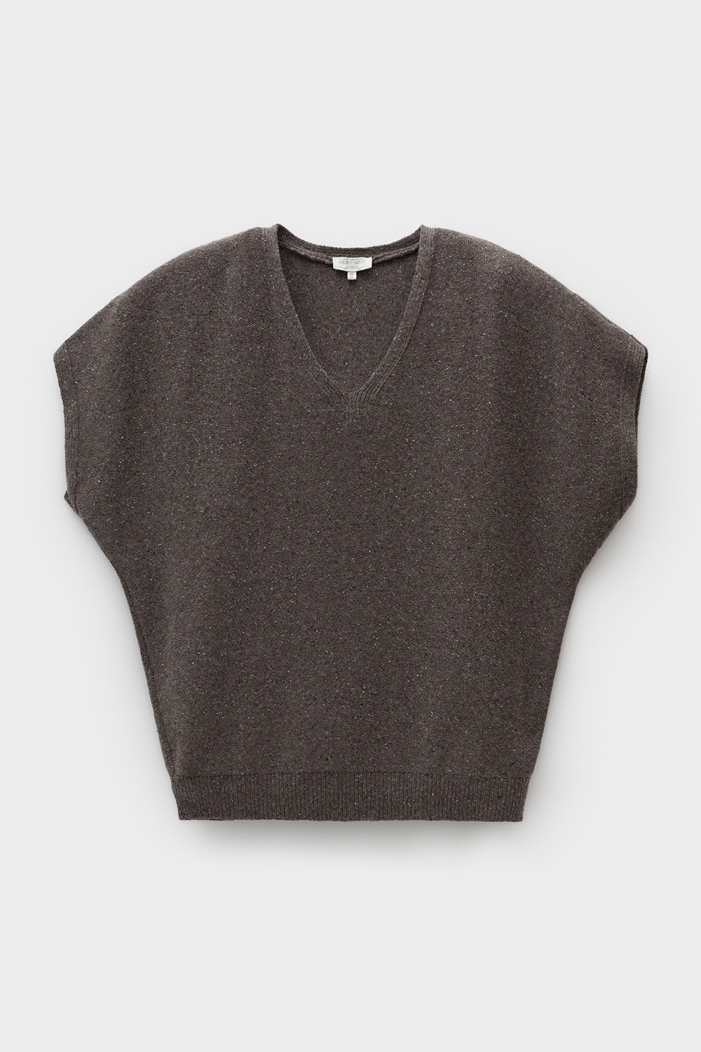 Джемпер с коротким  руковом из уникальной коллекции премиальных изделий, выполненных из итальянской пряжи, включает в себя мягчайшую шерсть мериноса и натуральный шелк. Это идеальное сочетание обеспечивает комфортное прилегание к телу, отличную терморегуляцию, воздухопроницаемость и отсутствие раздражения даже на самой чувствительной коже. Гладкая текстура с изысканными вкраплениями выглядит особенно стильно и современно.