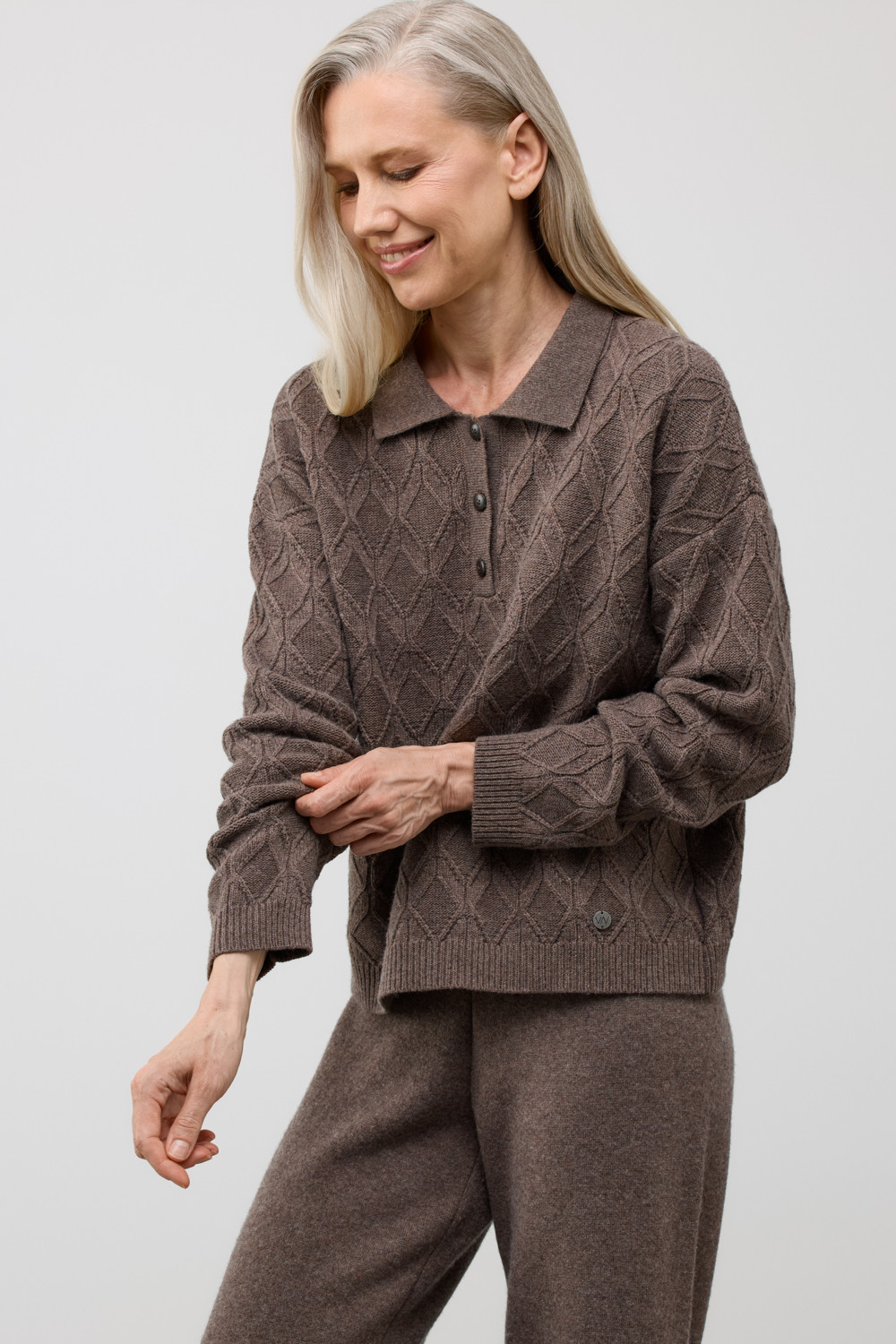 Мягкий джемпер из изысканной пряжи. Уникальное сочетание натуральных волокон обеспечивает непревзойденную мягкость. Меринос отлично удерживает тепло, кашемир придает шелковистость, а вискоза приятный блеск.