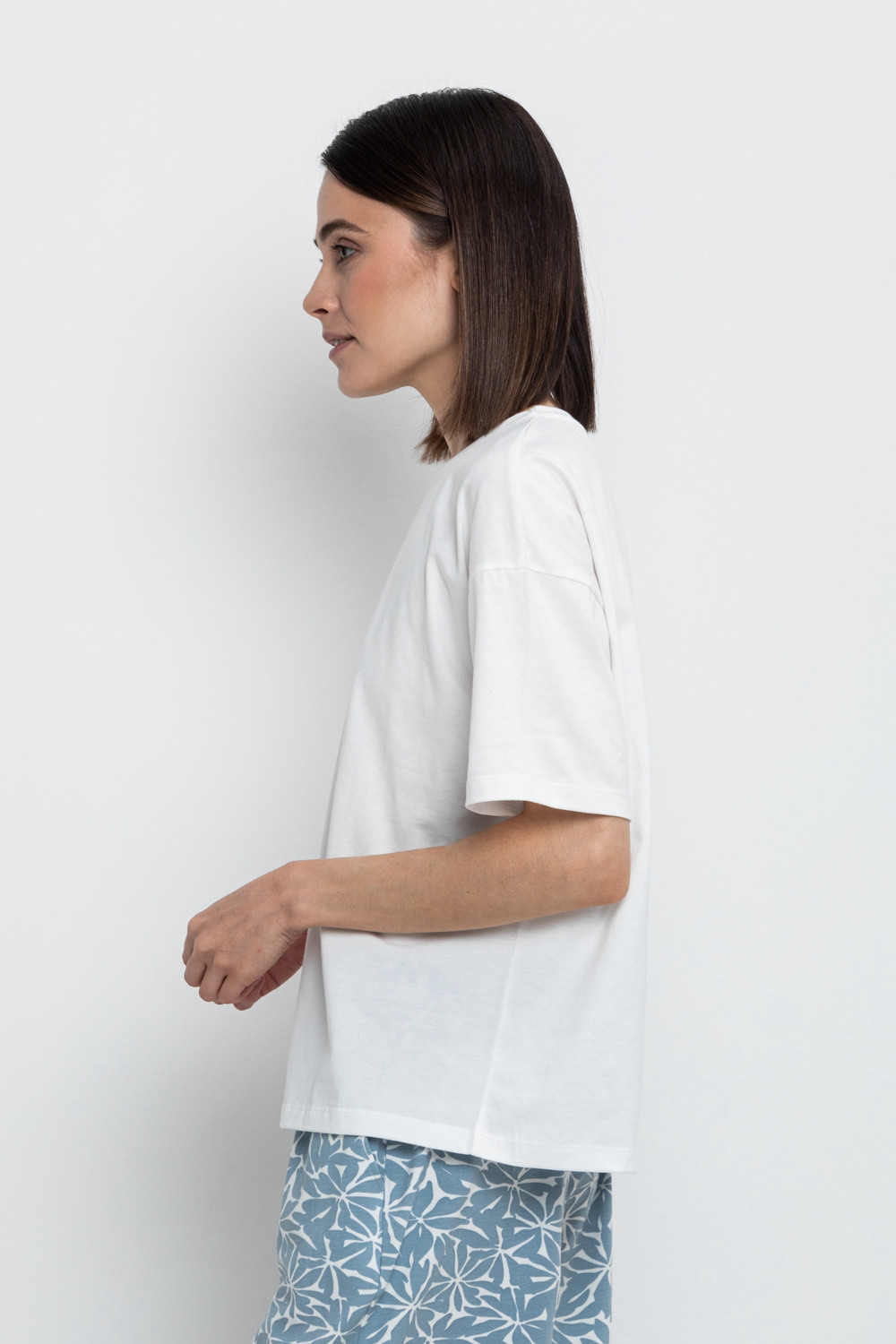 Удлиненная футболка из 100% натурального хлопка. Свободные рукава со спущенной линией плеча создают объём и свободный силуэт. Принт изготовлен из стойких текстильных красителей.