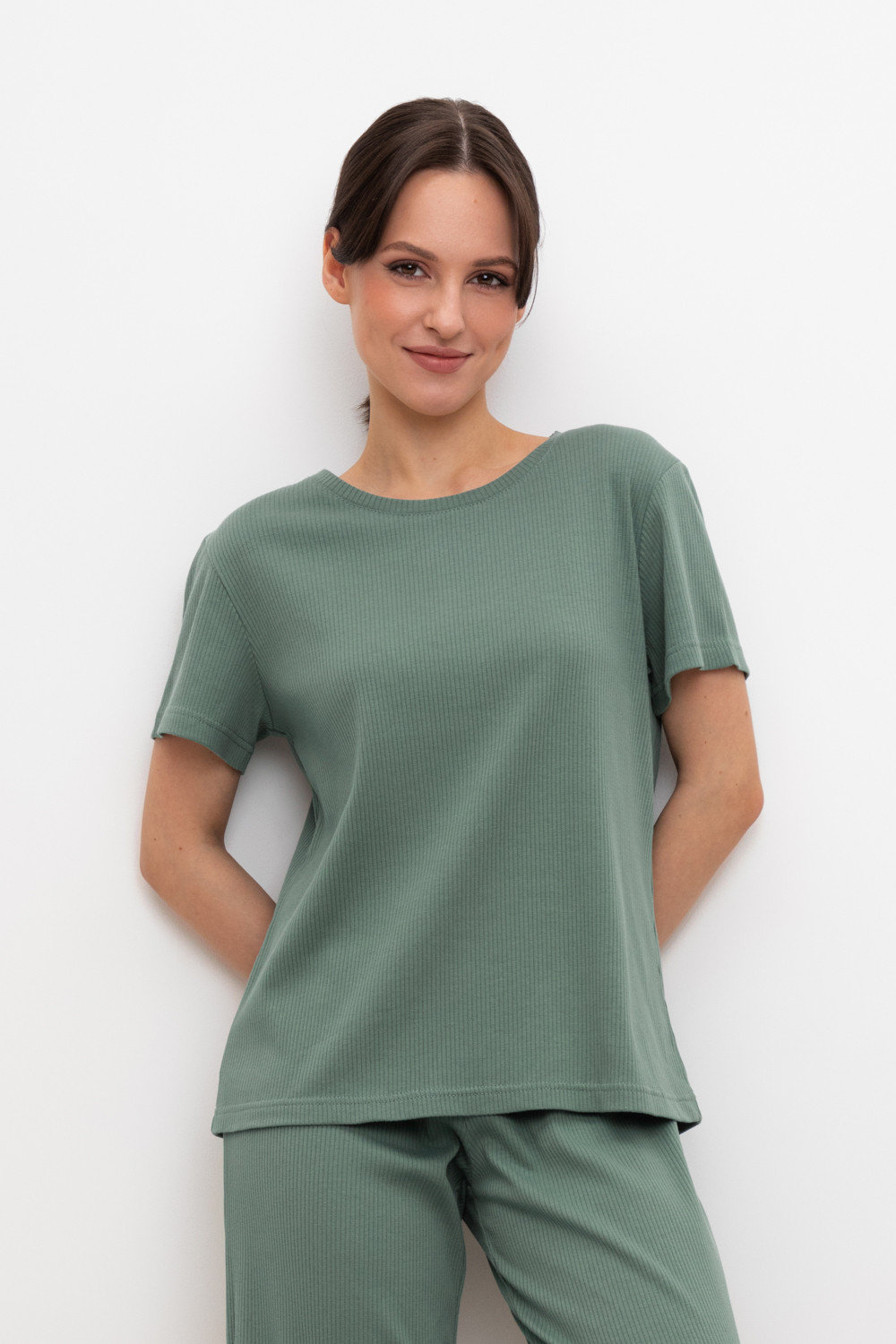 Комфортная футболка из трикотажного полотна в рубчик .