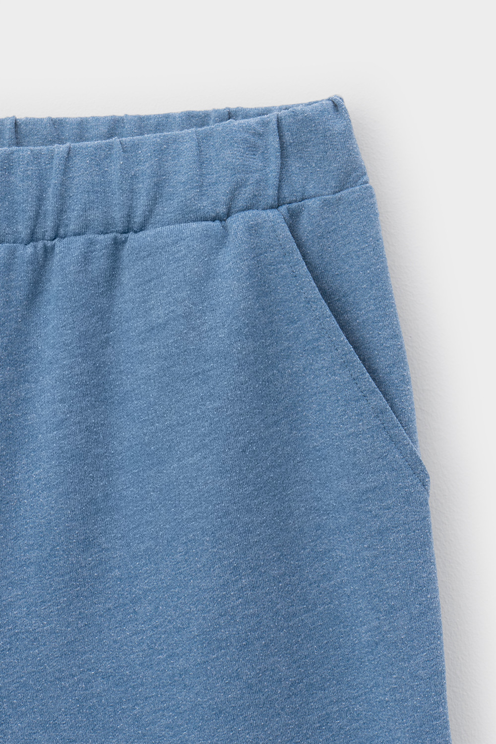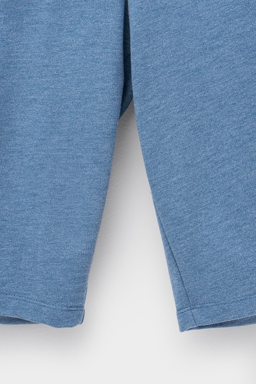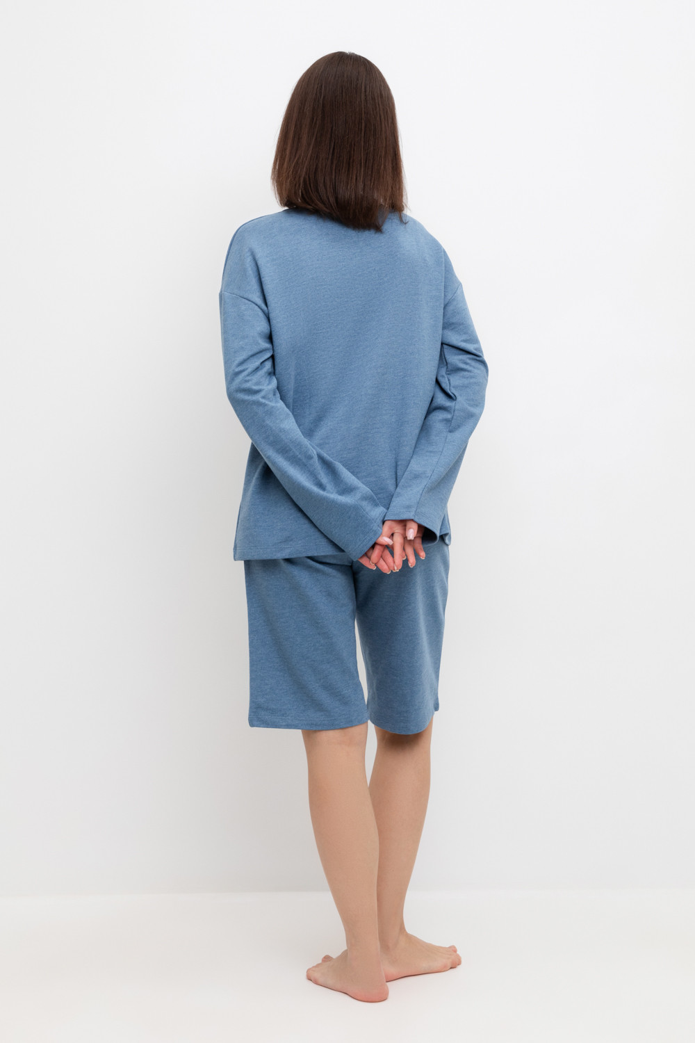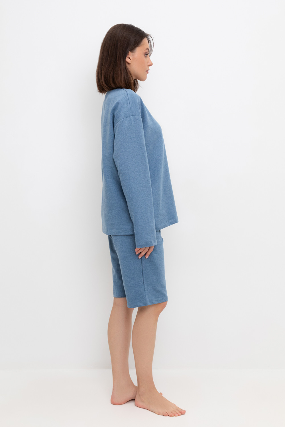 Уютный комплект для комфортного отдыха из меланжевого футера на основе натурального хлопка. Джемпер с длинными рукавами и спущенной линией плеча украшен лаконичным принтом. Шорты с боковыми карманами и мягким поясом на резинке удобно садятся по фигуре. Свободный силуэт не сковывает движения. Гладкий материал приятен к телу и позволяет коже дышать.
