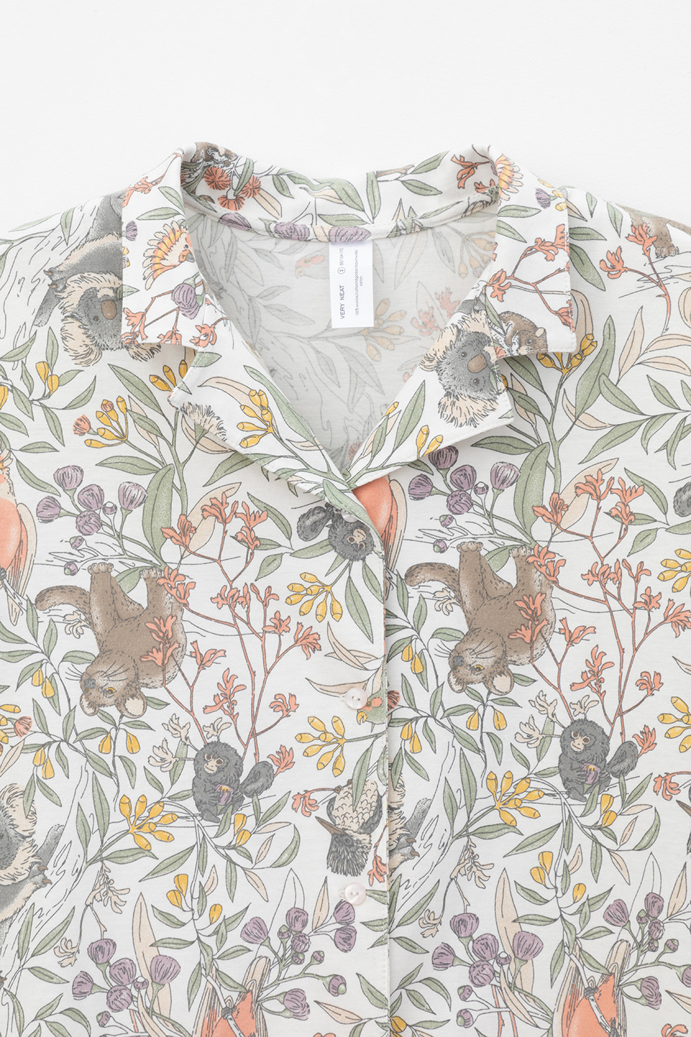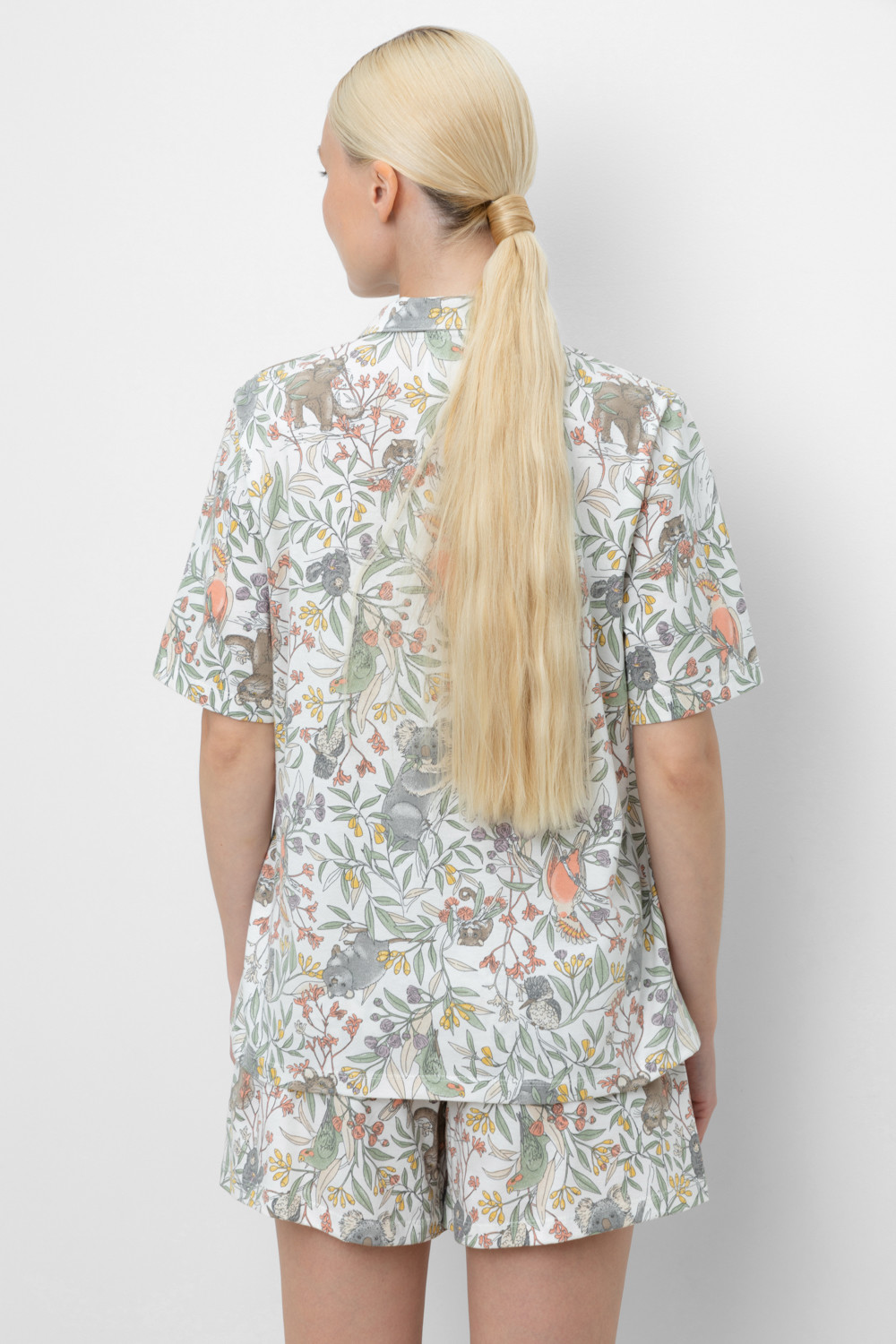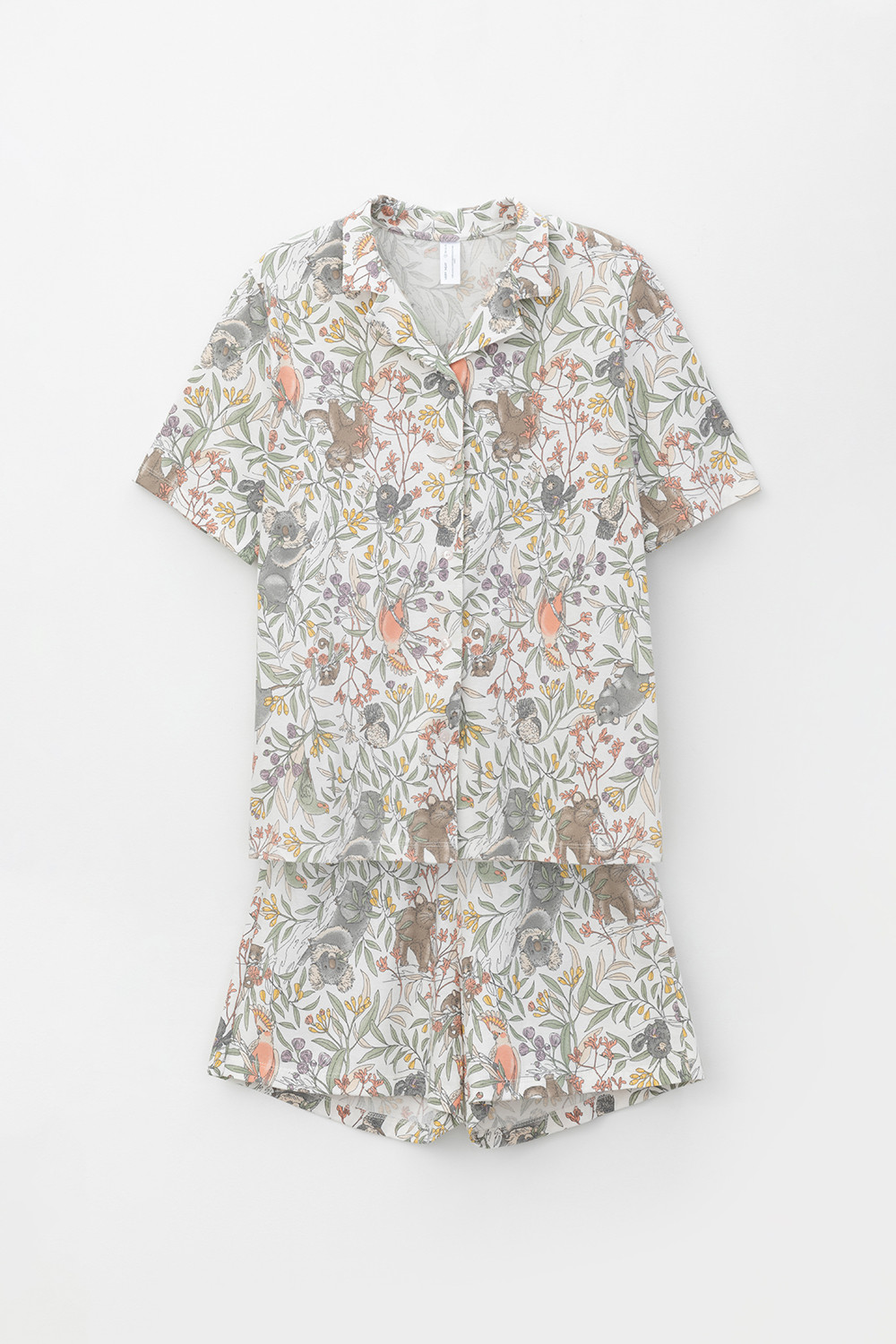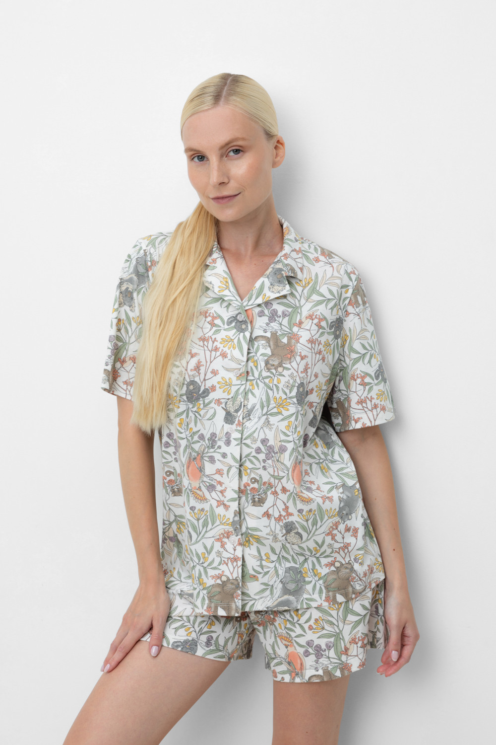 Комплект для комфортного сна и отдыха из набивного трикотажа из 100% натурального  хлопка. Рубашка с короткими рукавами на пуговицах . Шорты с мягким поясом на резинке. Гладкий материал приятен к телу, не теряет форму и позволяет коже дышать.