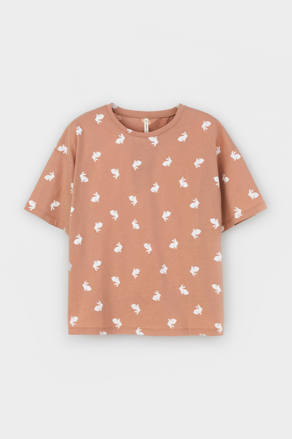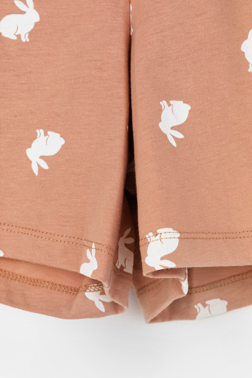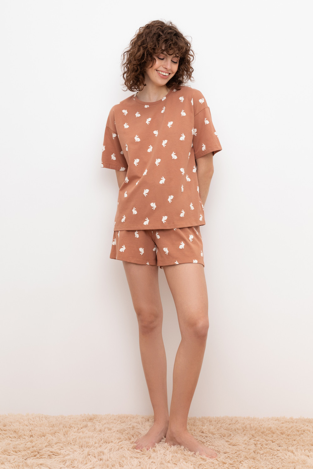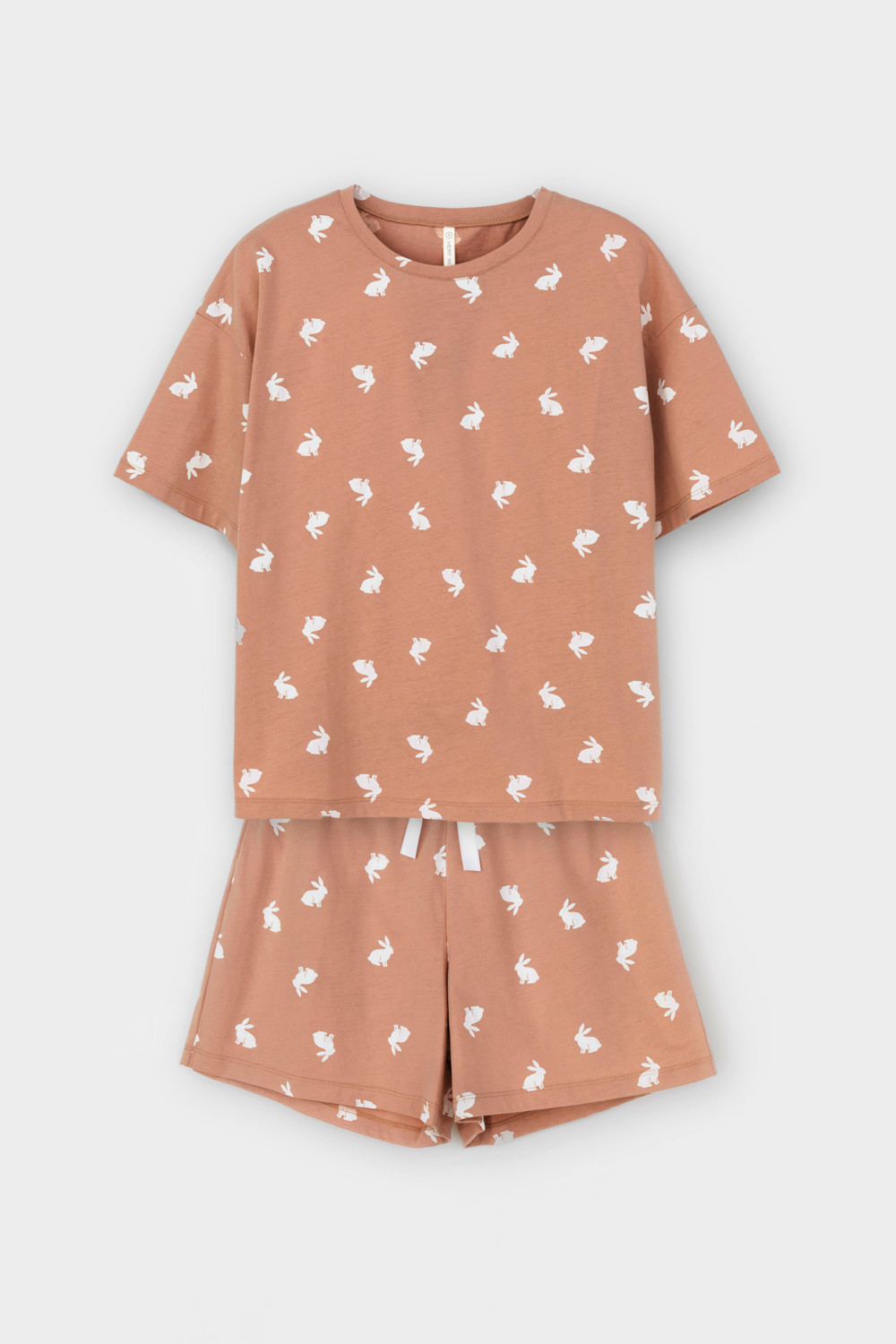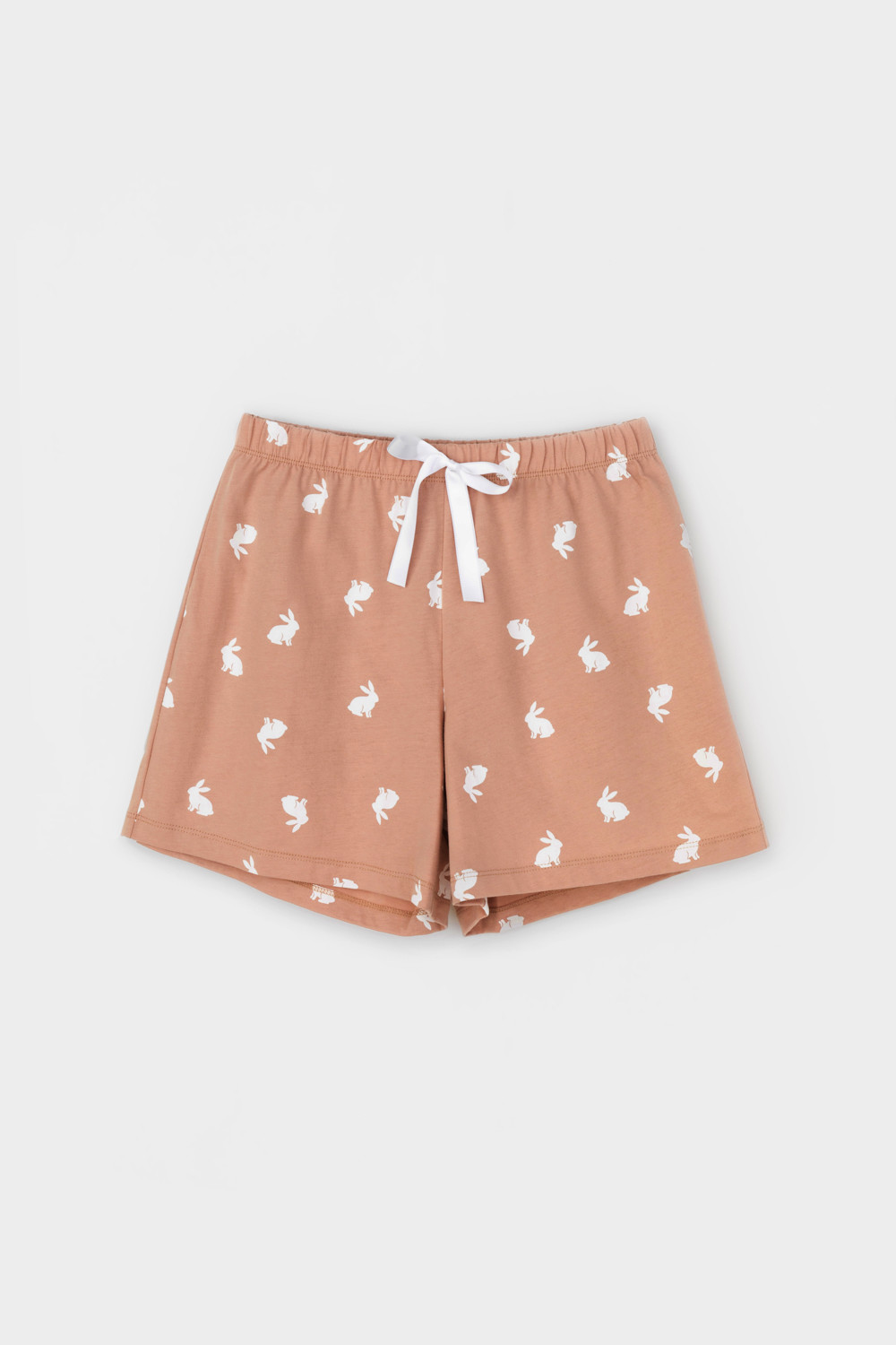 Комплект для комфортного отдыха из набивного трикотажа с нежным рисунком. Футболка с короткими рукавами и спущенной линией плеча комфортно садится по фигуре. Шорты с мягким поясом на резинке. Свободный силуэт не сковывает движения.
