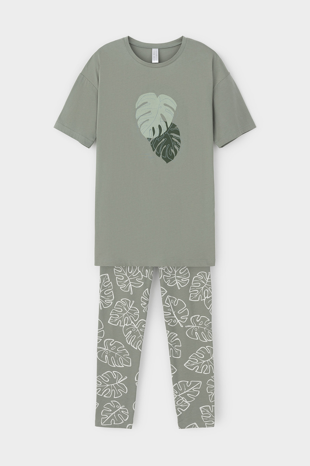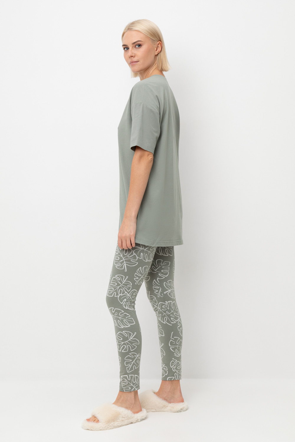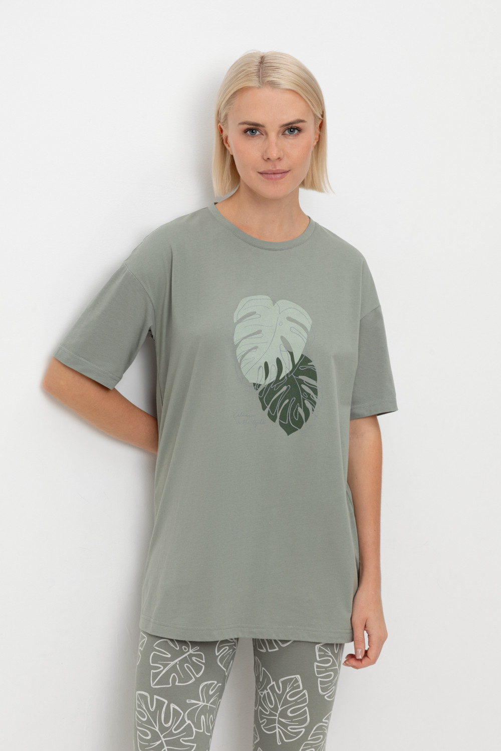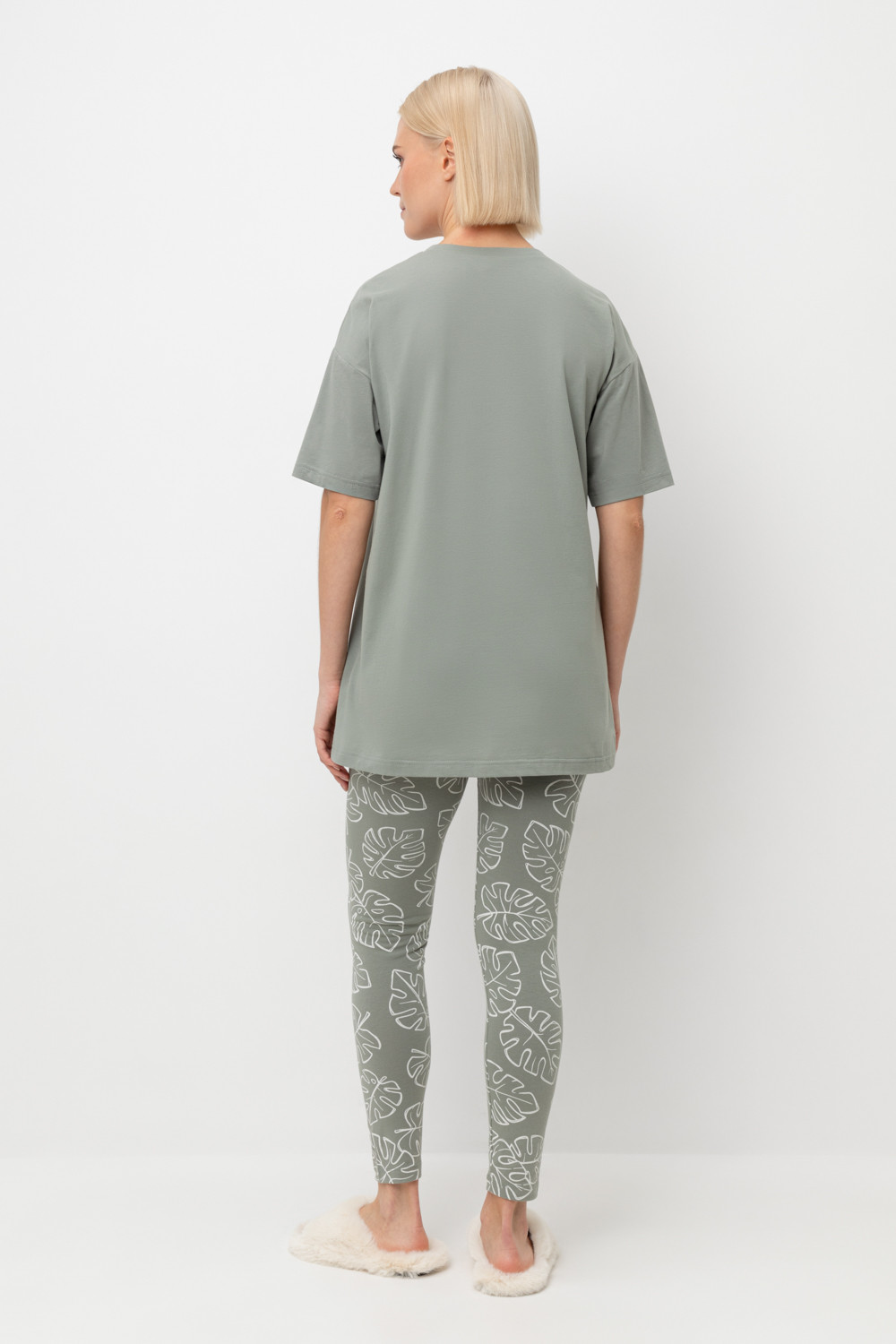 Комплект для сна и отдыха из натурального хлопка. Удлиненная футболка комфортно садится по фигуре.  Бриджи из набивного трикотажа с добавлением лайкры с мягким поясом на резинке.