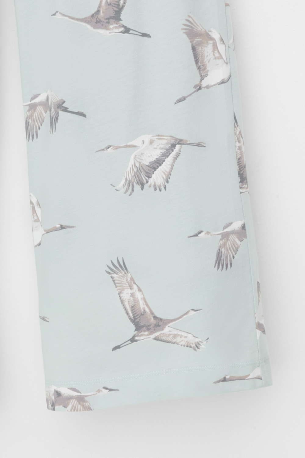 Комплект из высококачественного гребенного хлопка. Мягкий на ощупь принт на футболке выполнен на основе  водных красок, что обеспечивает устойчивость к многократным стиркам.  Комплект дополняют укороченные брюки с удобным поясом на резинке и практичными карманами.