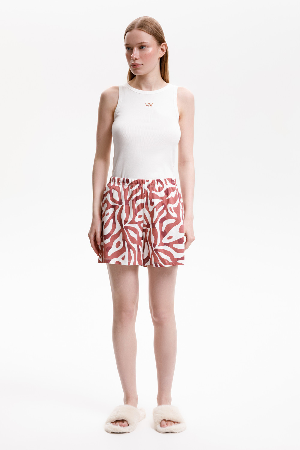 Топ из мягкого эластичного трикотажа в  рубчик  и шорты из высококачественного гребенного хлопка - это идеальное сочетание уютного комфорта.