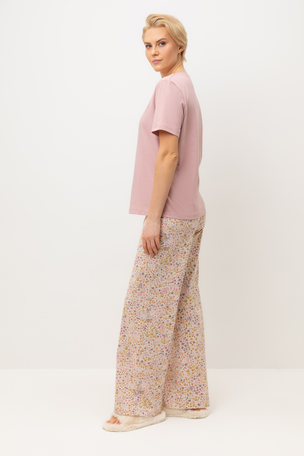 Комплект из высококачественного гребенного хлопка. Брюки с удобным поясом на резинке добавлят удобства отдыху