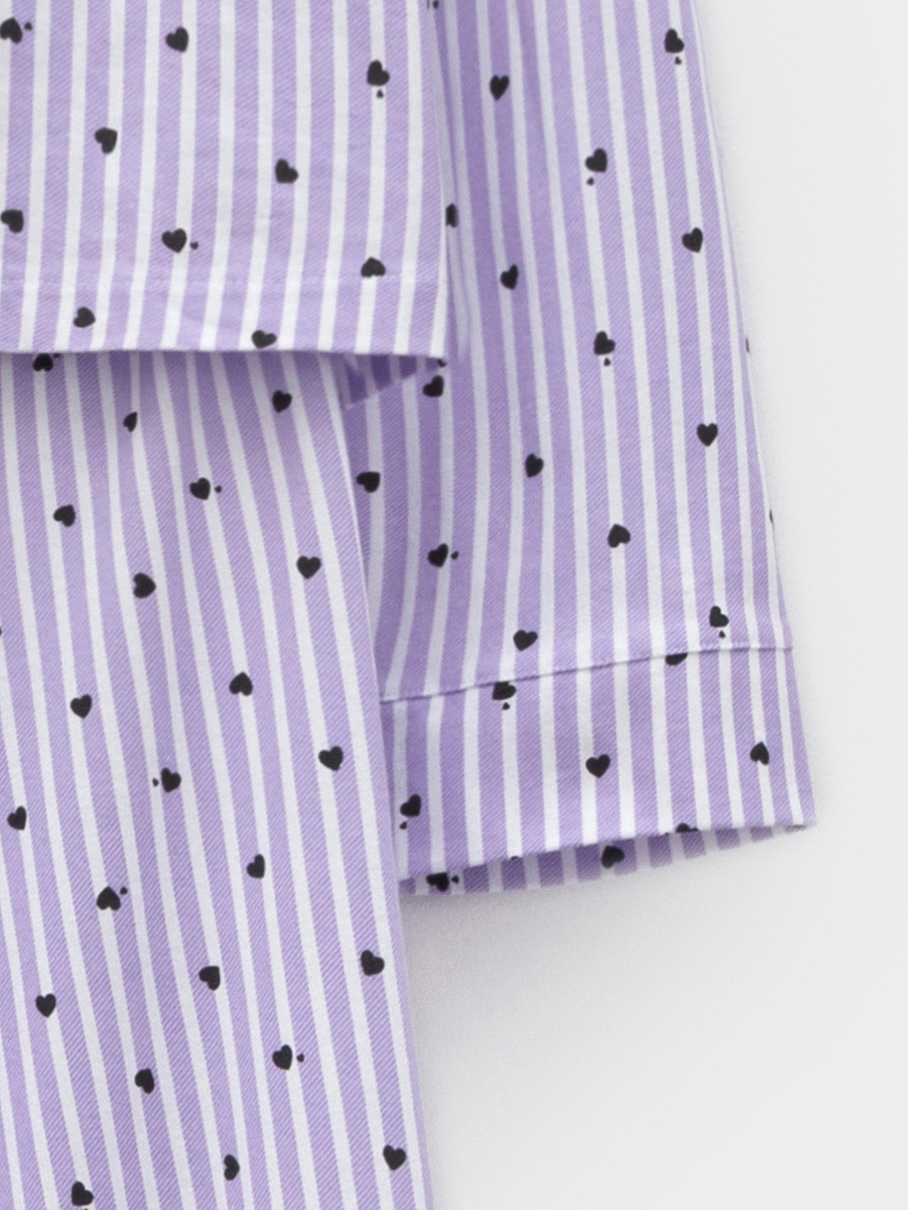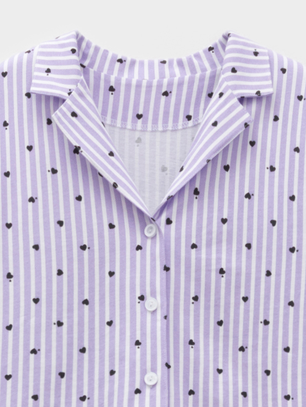 Трикотажная пижама из натурального хлопка для комфортного сна и отдыха. Рубашка на пуговицах с длинными рукавами и широкие брюки с мягкой эластичной резинкой в поясе. Гладкий материал приятен к телу, не теряет форму и позволяет коже дышать. Набивной рисунок выполнен из стойких текстильных гипоаллергенных красителей. Все трикотажные полотна производятся в соответствии с нормами швейцарского сертификата ЭкоТекс.