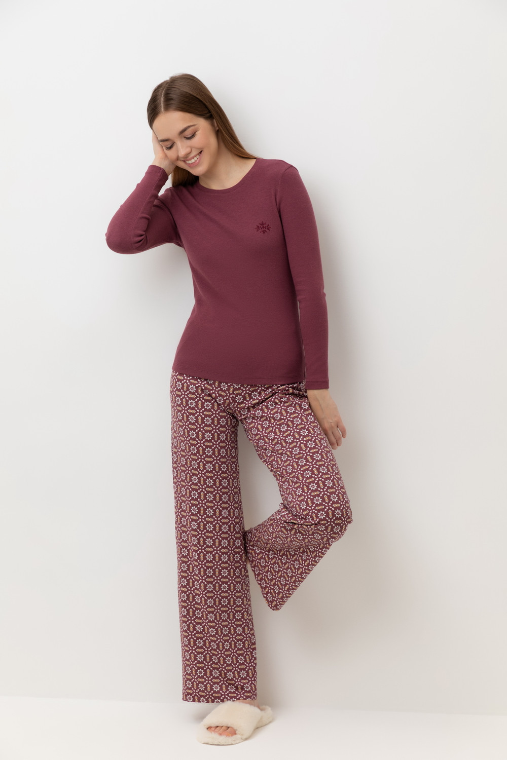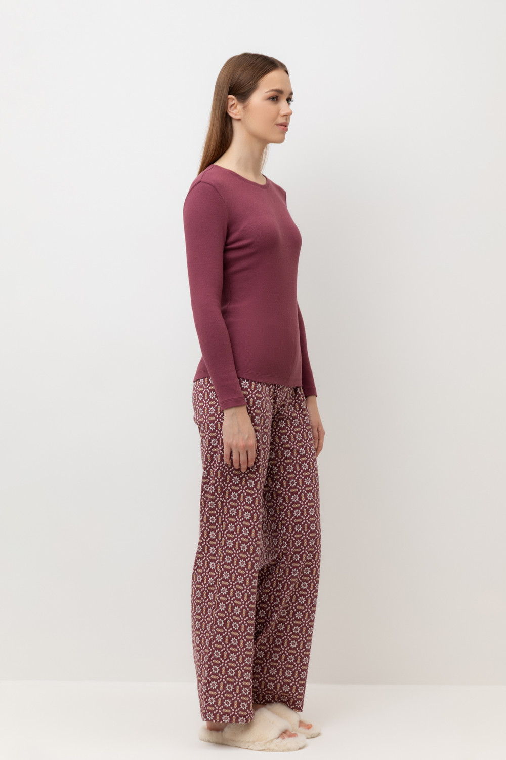 Лонгслив из мягкого эластичного трикотажа в  рубчик  и брюки из высококачественного гребенного хлопка - это идеальное сочетание уютного комфорта.