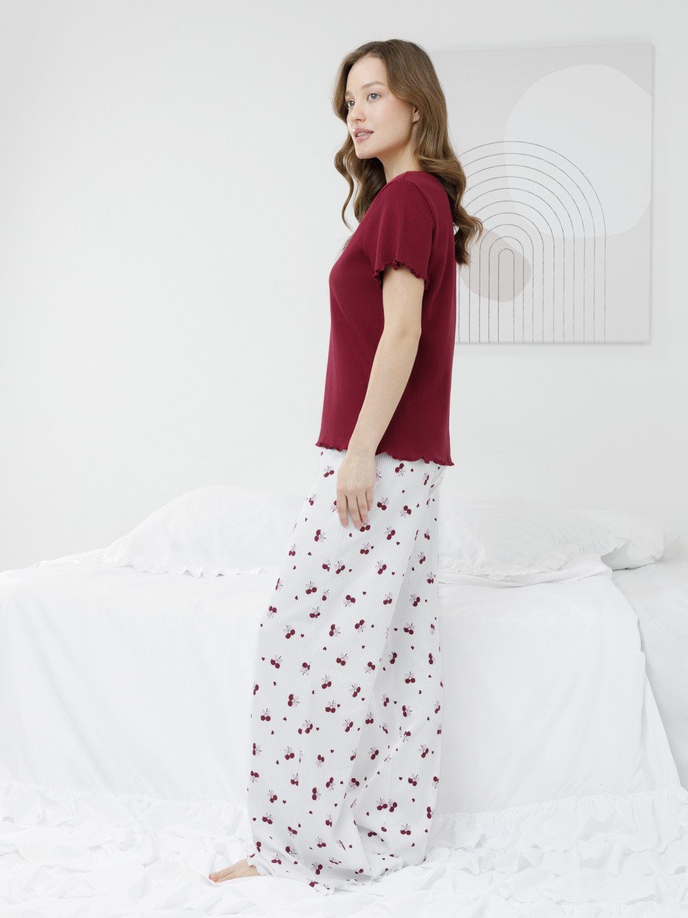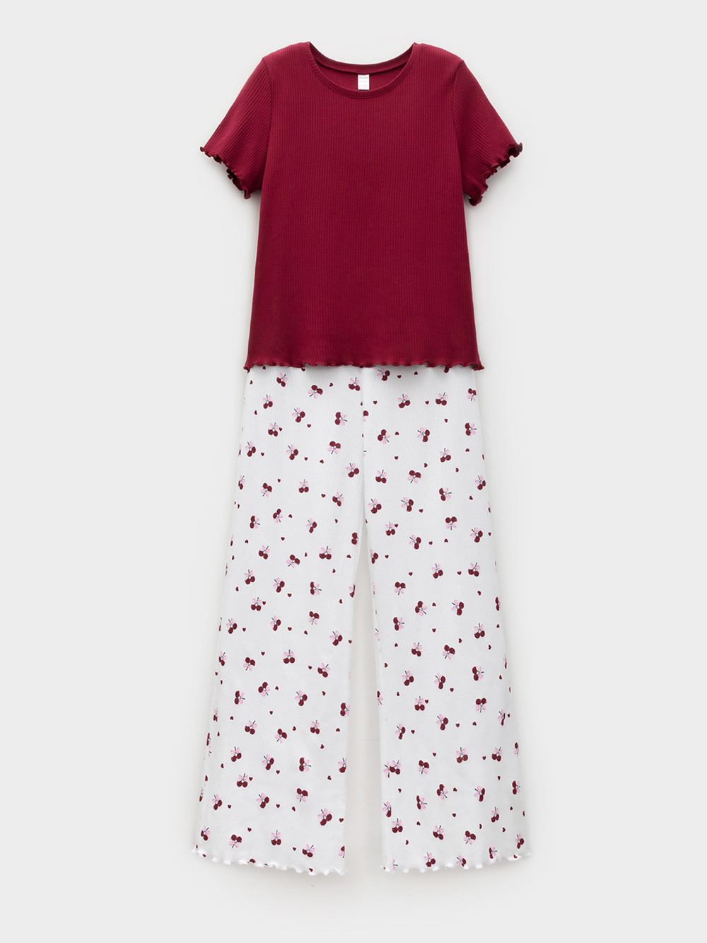 Пижама из трикотажа в рубчик для комфортного сна и отдыха. Эластичная футболка с короткими рукавами и широкие брюки с мягкой резинкой в поясе. Комплект изготовлен из 100% натурального хлопка. Материал приятен к телу, не теряет форму и позволяет коже дышать. Оригинальный рисунок выполнен из стойких текстильных гипоаллергенных красителей. Все трикотажные полотна производятся в соответствии с нормами швейцарского сертификата ЭкоТекс.