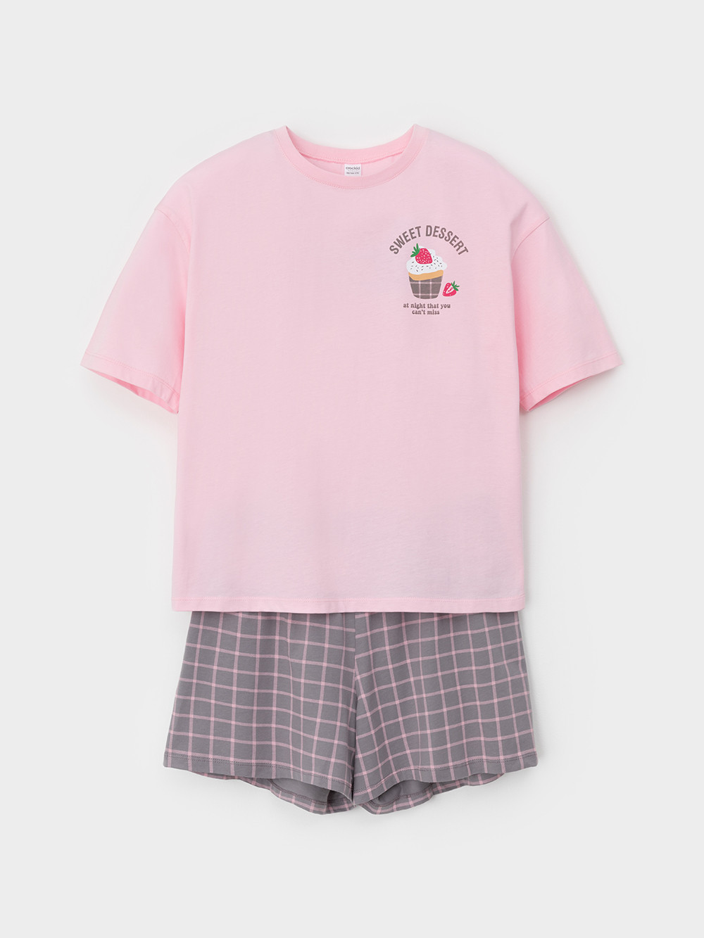 Трикотажная пижама из натурального хлопка для комфортного сна и отдыха. Свободная футболка с короткими спущенными рукавами и шорты с мягкой эластичной резинкой в поясе. Гладкий материал приятен к телу, не теряет форму и позволяет коже дышать. Оригинальный рисунок выполнен из стойких текстильных гипоаллергенных красителей. Все трикотажные полотна производятся в соответствии с нормами швейцарского сертификата ЭкоТекс.