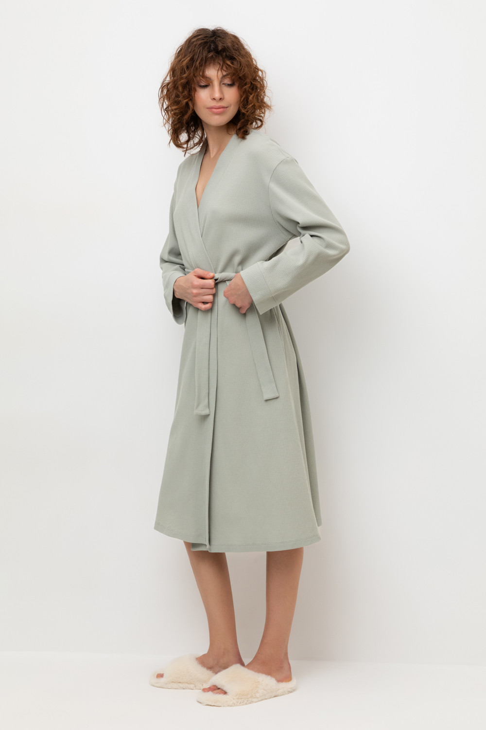 Уютный халат из 100% натурального хлопка на запах с длинными рукавами. В боковых швах два удобных кармана. С помощью пояса можно регулировать посадку и силуэт. Вафельное переплетение прекрасно впитывает влагу и сохраняет тепло.
