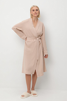 Халат из мягкого объемного трикотажа с добавлением эластичных волокон подарит атмосферу домашнего уюта и комфорта.