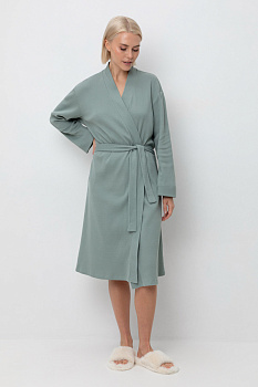 Халат из мягкого объемного трикотажа с добавлением эластичных волокон подарит атмосферу домашнего уюта и комфорта.