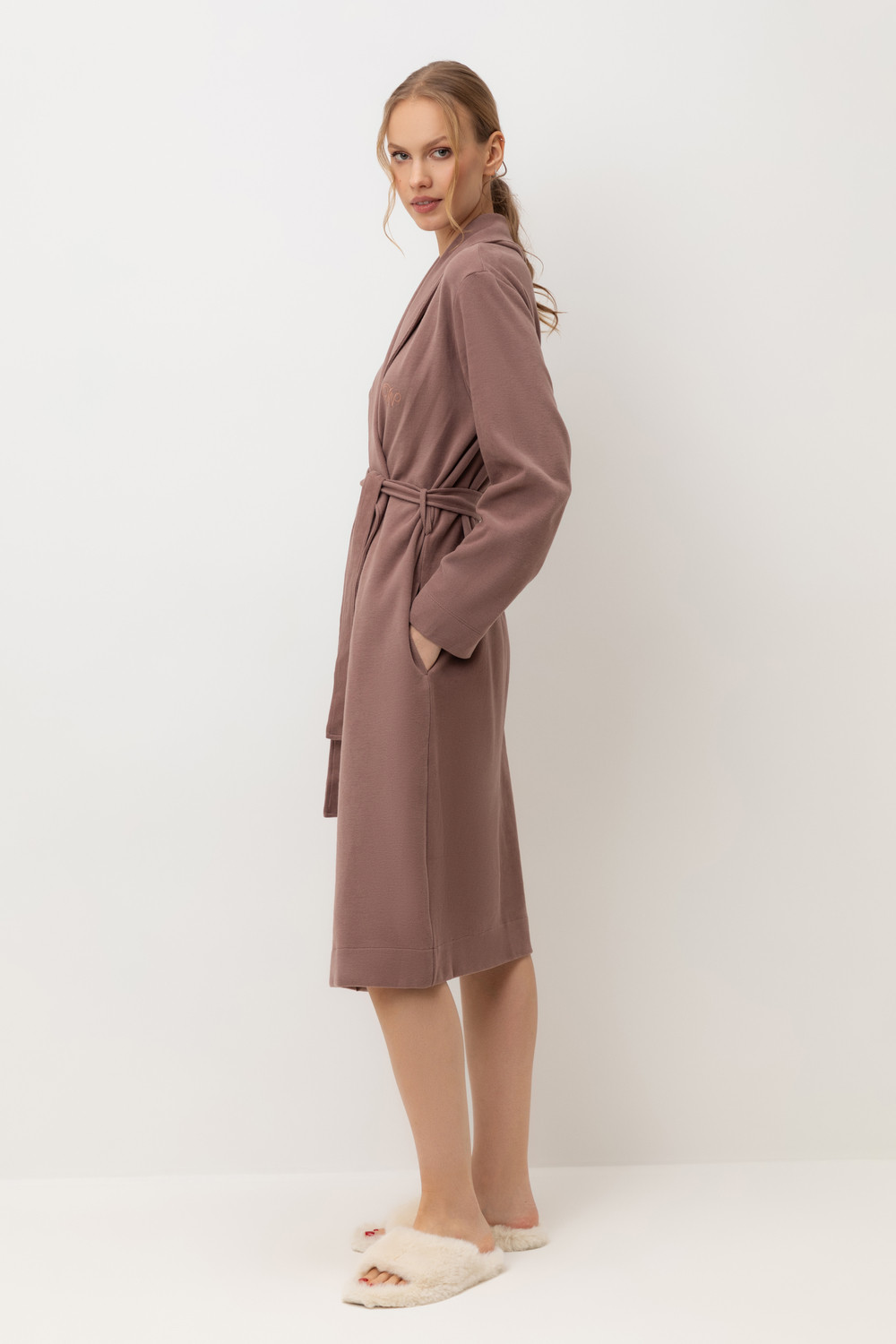 Халат из мягкого 100% хлопка с обработкой пич эффектом  подарит атмосферу домашнего уюта и комфорта, придавая изделию бархатистость и мягкость.