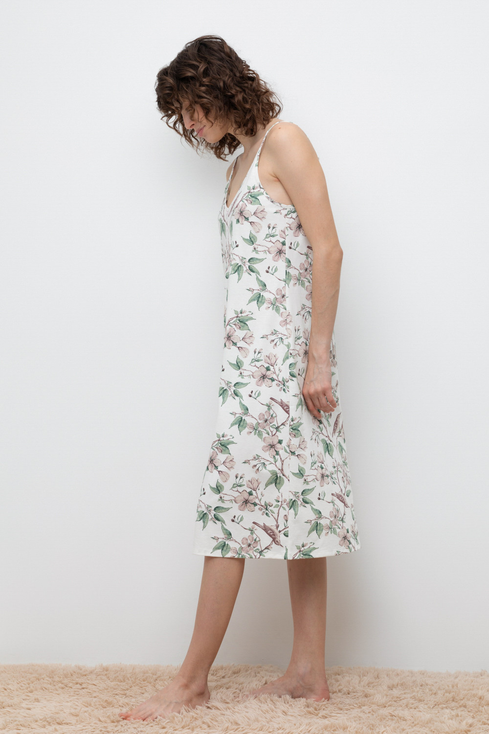 Элегантная сорочка на бретелях для комфортного сна из 100% натурального хлопка. На груди декоративные пуговицы. Гладкий материал приятен к телу и позволяет коже дышать.