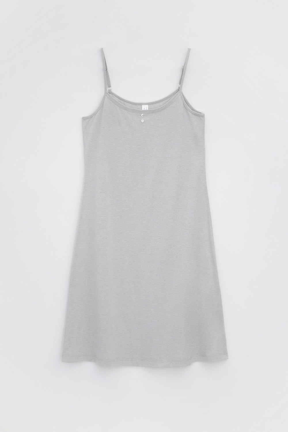 Элегантная меланжевая сорочка с регулируемыми бретелями для комфортного сна. На груди декоративные пуговицы. Гладкий материал приятен к телу и позволяет коже дышать.