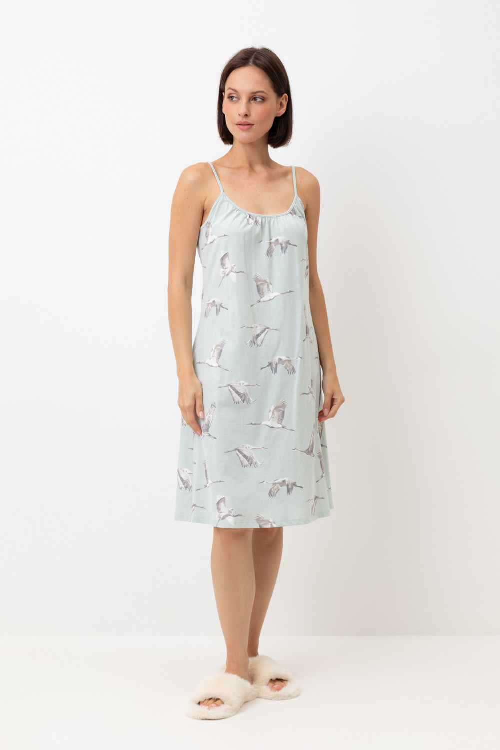 Сорочка из высококачественного гребенного хлопка. Регулируемые бретели позволяют подстроить их под ваши предпочтения, а свободный крой добавляет комфорта во время сна.