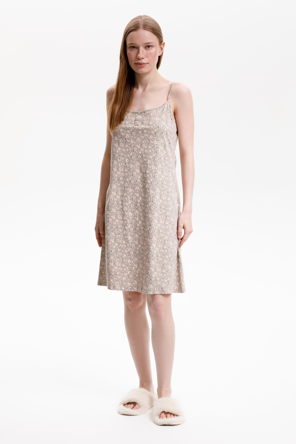 Сорочка из высококачественного гребенного хлопка. Регулируемые бретели позволяют подстроить их под ваши предпочтения, а свободный крой добавляет комфорта во время сна.