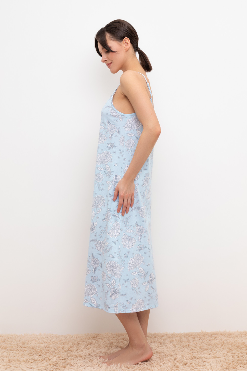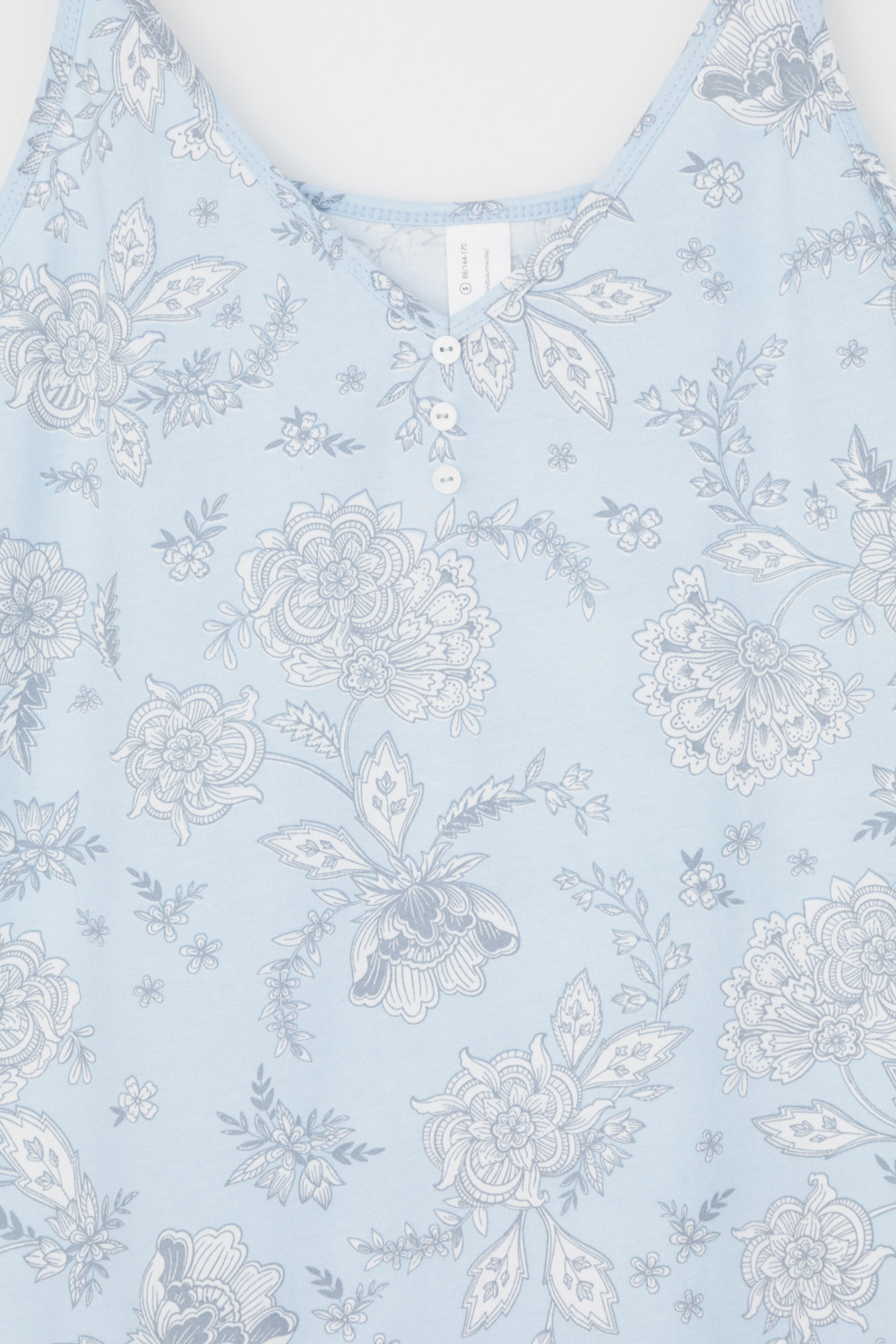 Элегантная сорочка на бретелях для комфортного сна из 100% натурального хлопка. На груди декоративные пуговицы. Гладкий материал приятен к телу и позволяет коже дышать.