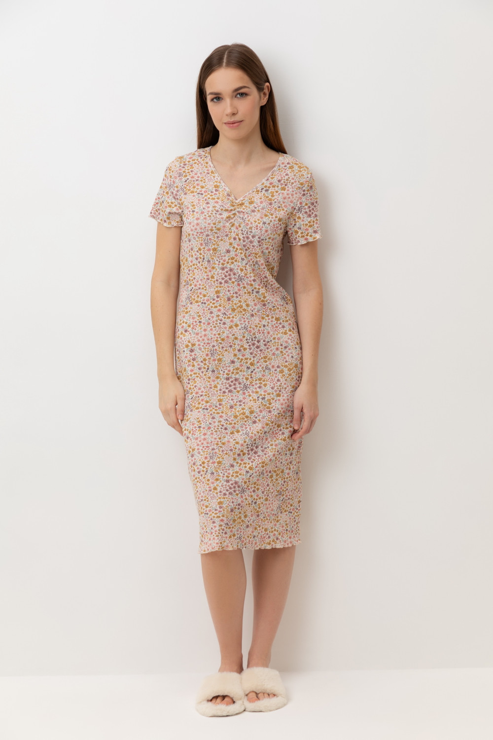 Комфортная сорочка  выполнена из  высококачественного трикотажа в рубчик. Свободный крой добавляет комфорта во время сна.