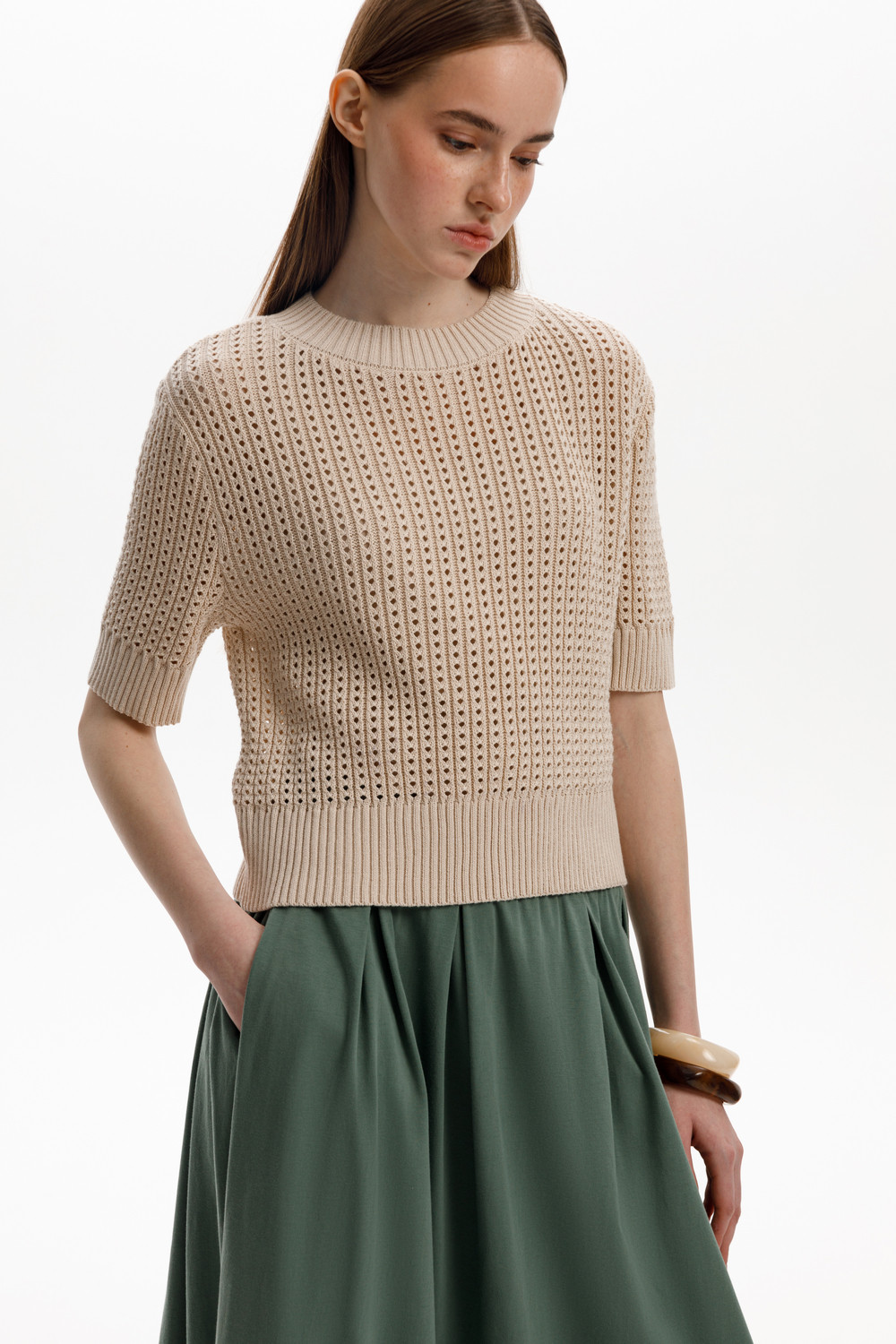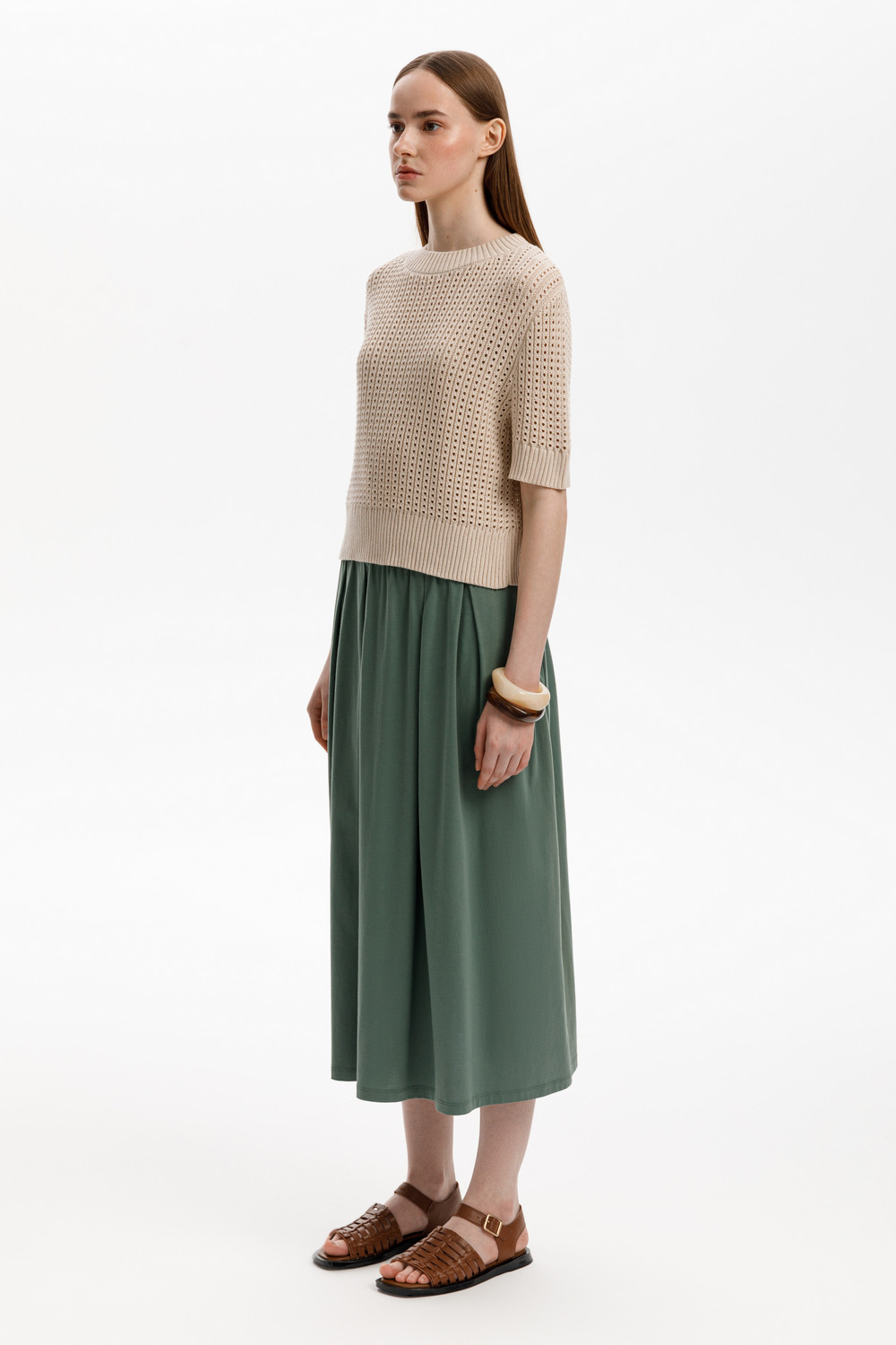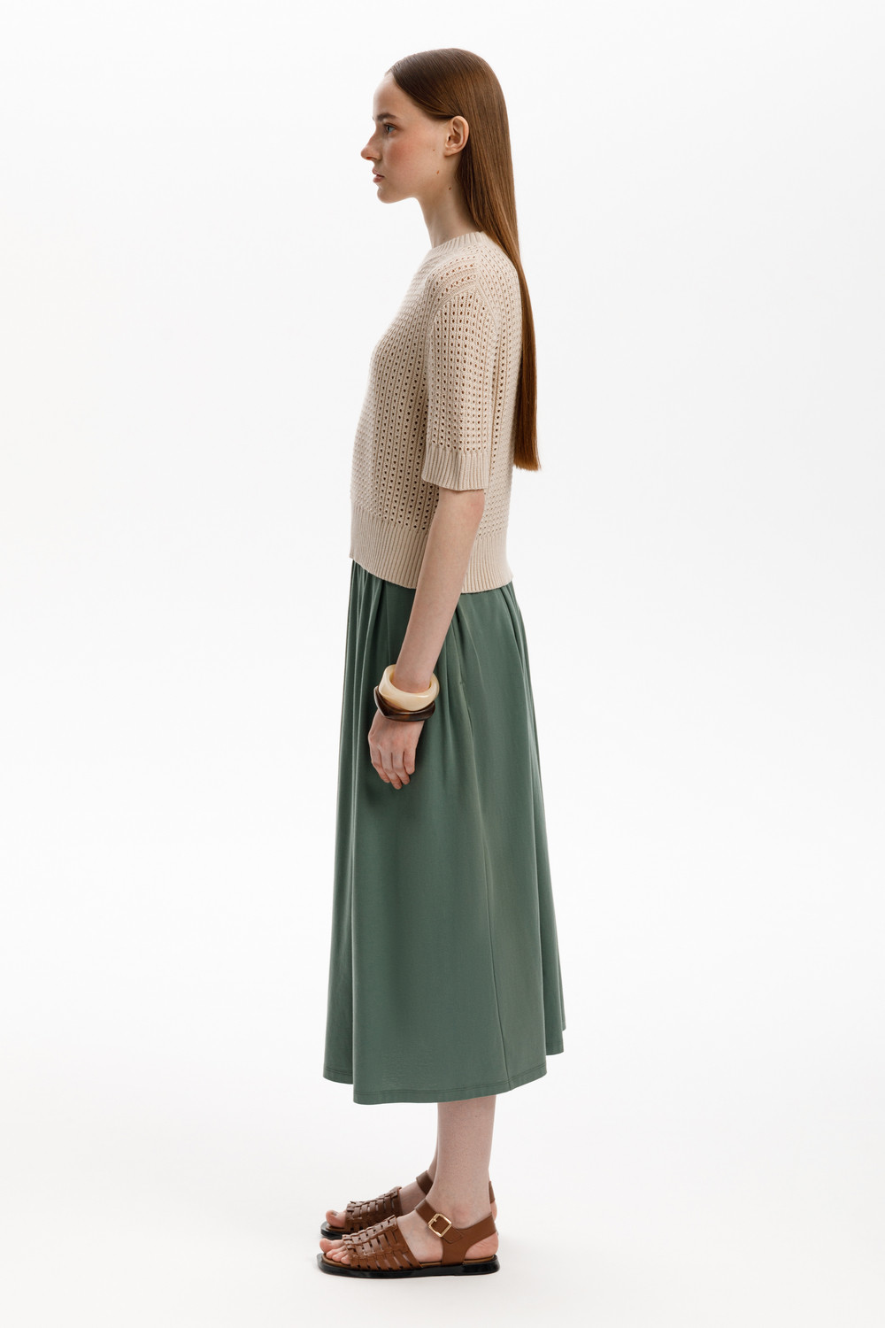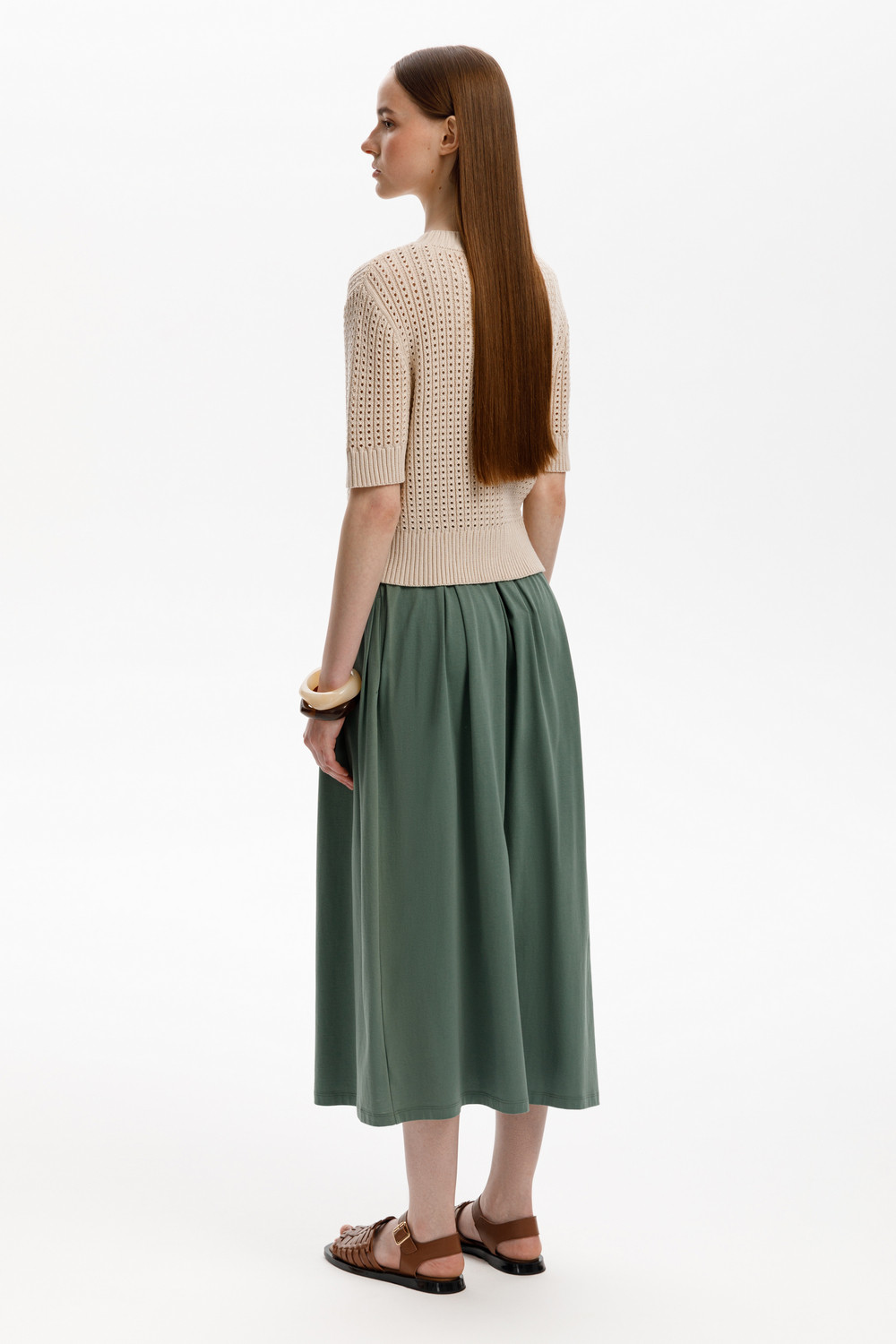 Юбка миди из длинноволокнистого гребенного хлопка с широкими мягкими складками.