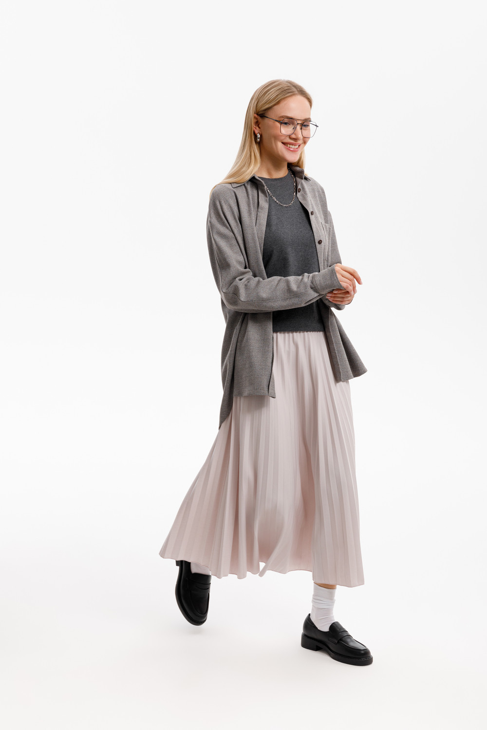 Струящаяся юбка гофре незаменима в вашем летнем гардеробе. Изготовленная из премиального трикотажа DOUBLE FACE, дарит ощущение комфорта и легкости. Серо-сиреневый цвет - это нежный оттенок, который придает образу романтичный стиль.