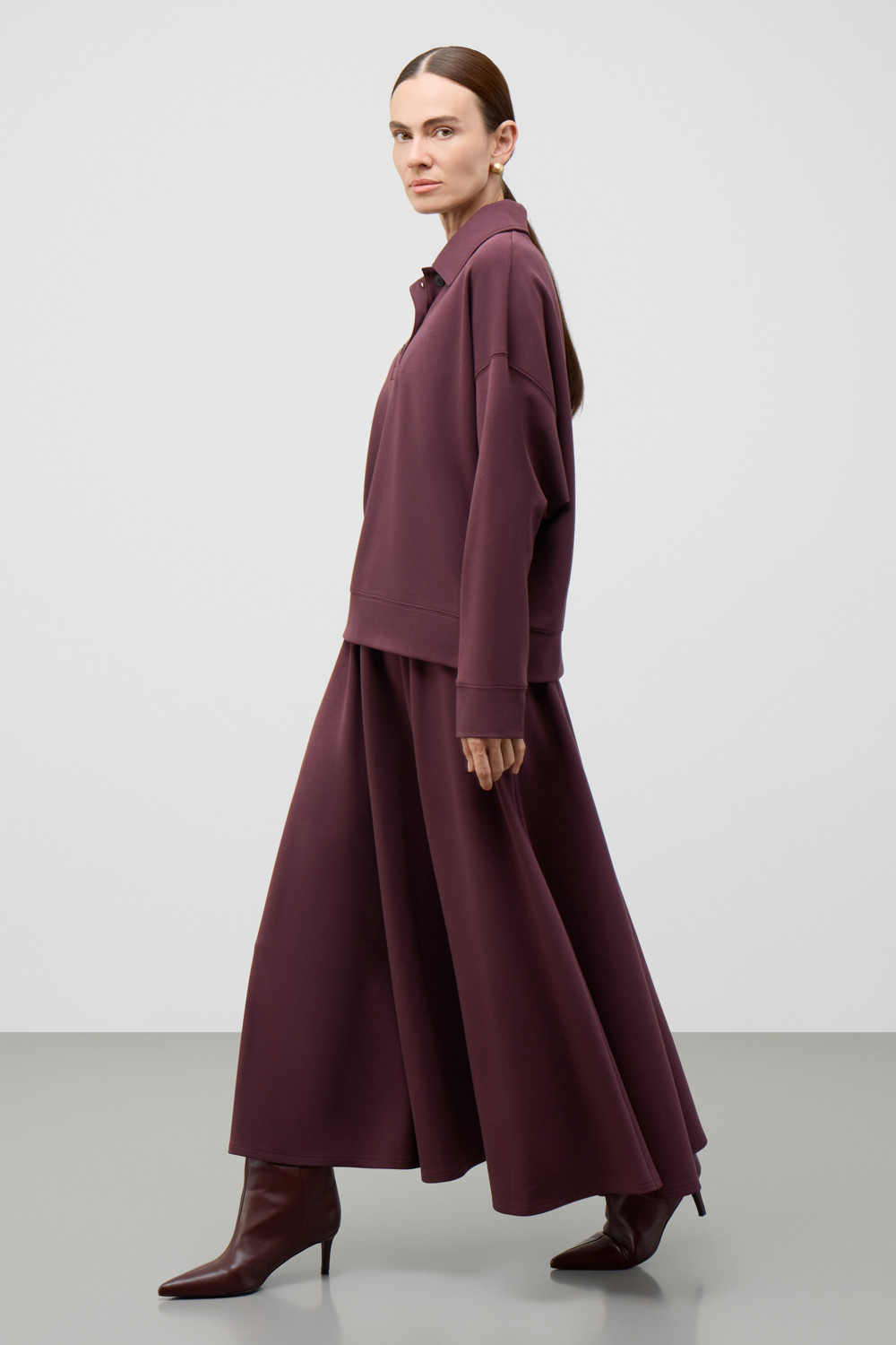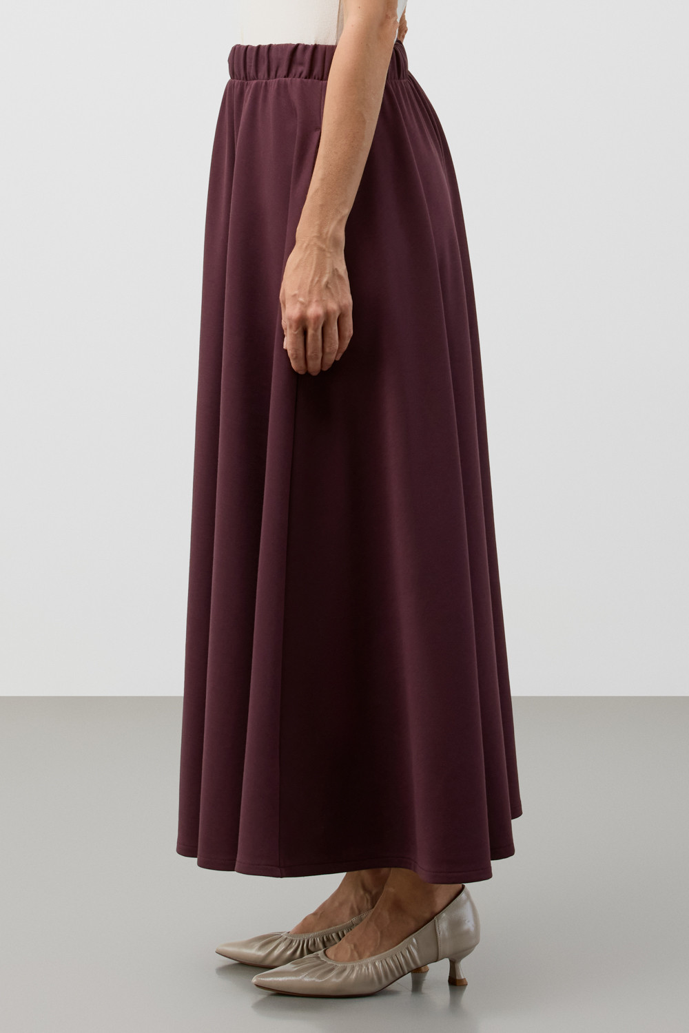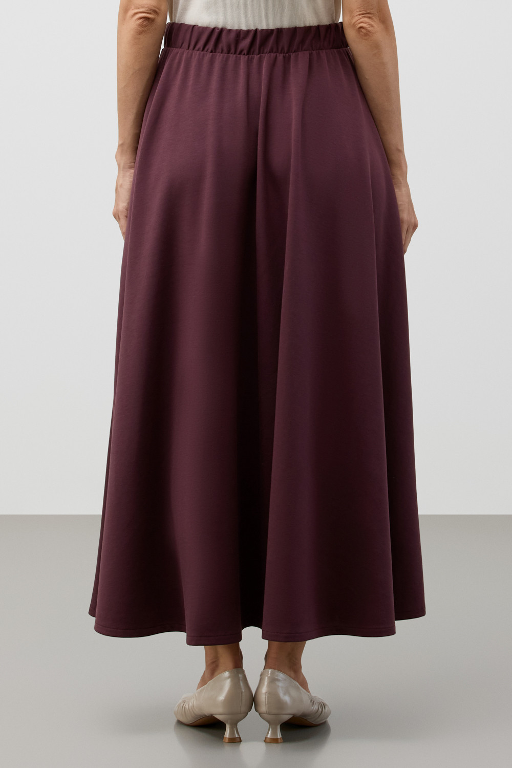 Юбка-полусолнце выполнена из инновационного высококачественного трикотажного полотна DOUBLE FACE, который сочетает в себе мягкость натуральных волокон и долговечность современных технологий. Мягкая резинка на поясе обеспечивает комфортную посадку без ощущения давления и дискомфорта.
