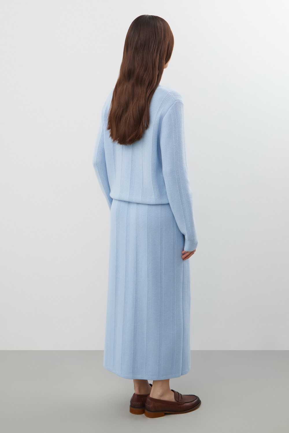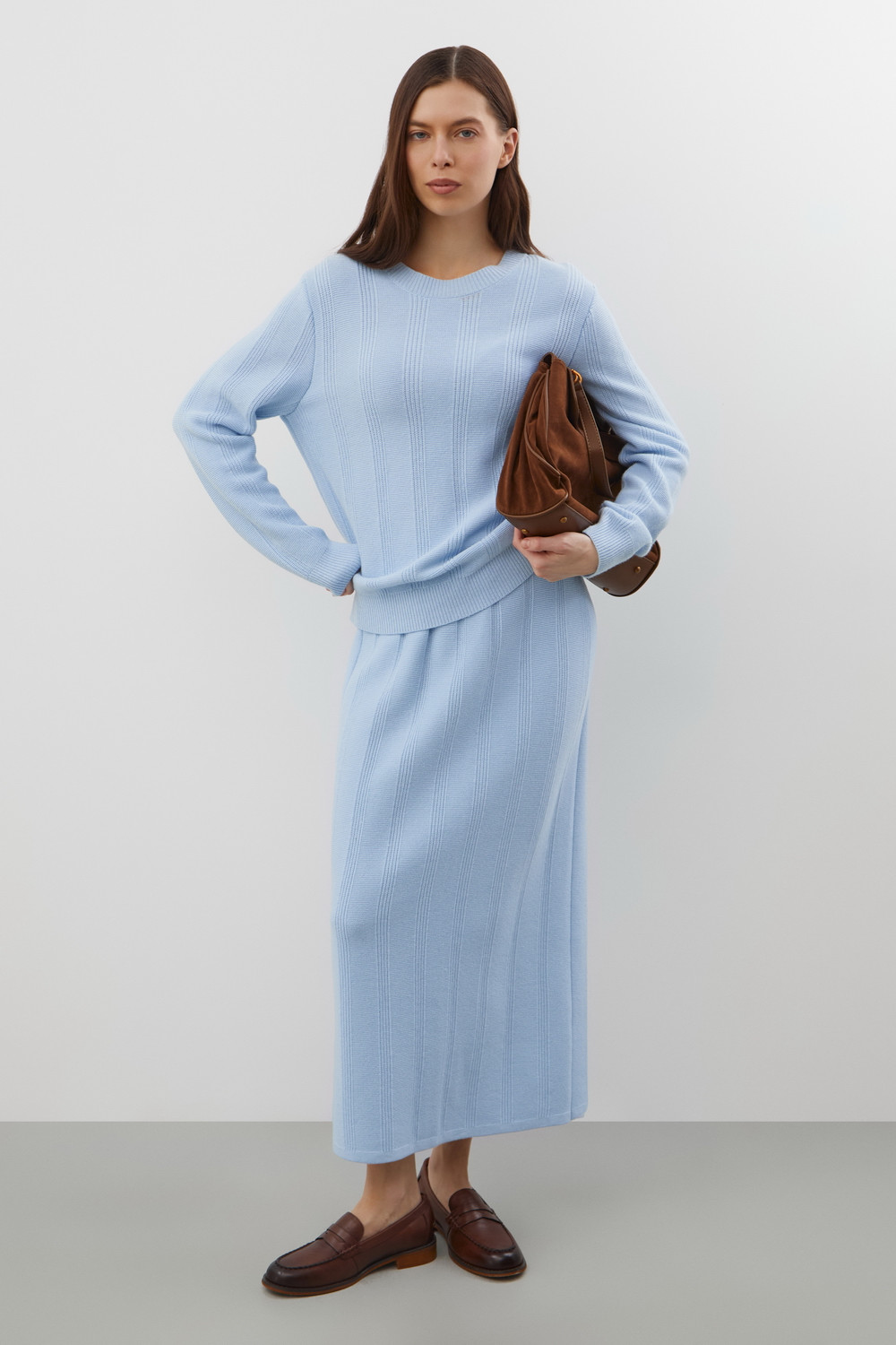 Эксклюзивная модель из высококачественной итальянской шерсти с добавлением кашемира и мериноса  — идеальное сочетание для безупречного комфорта и элегантности. Рельефная текстура подчеркивает утонченный вкус и делает эту юбку незаменимым элементом гардероба.