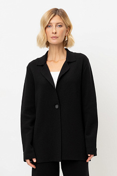 Женский жакет прямого кроя связан комбиниркой. Шерсть мериноса в составе сохраняет тепло, акрил делает изделие мягким. Прямой силуэт идеально подходит как к юбке, так и к брюкам.