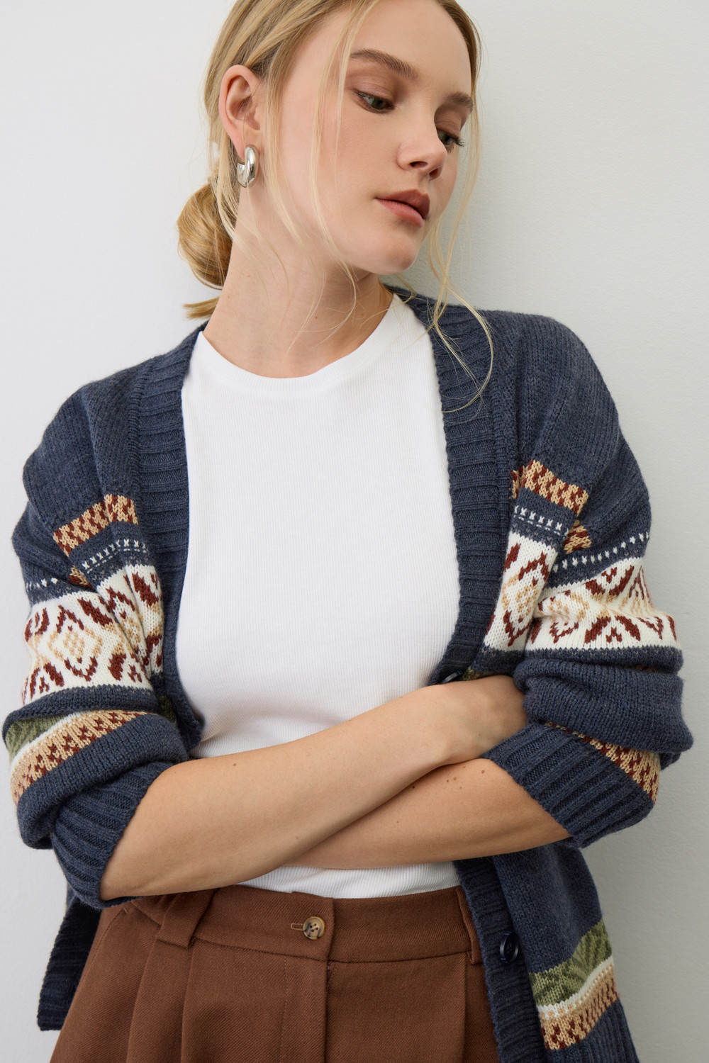 Мягкий кардиган в скандинавском стиле выполнен из материалов премиум-класса. Идеальное сочетание шерсти и акрила обеспечивает комфорт, нежно облегает тело, является гипоаллергенным и прекрасно сохраняет свою форму.