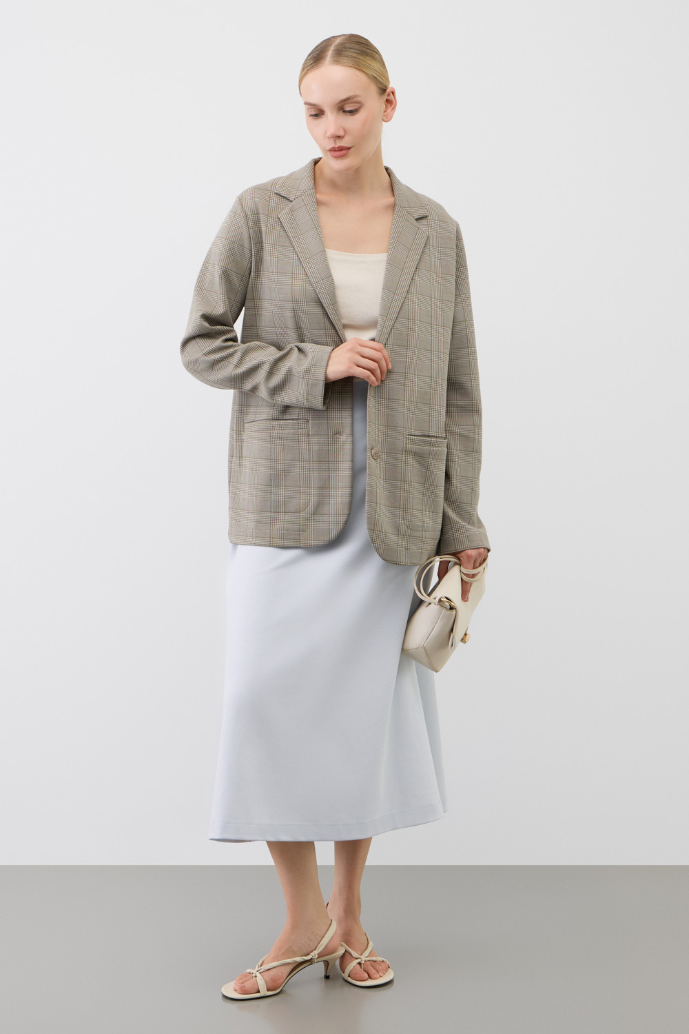Пиджак изготовлен из высококачественного трикотажного полотна DOUBLE FACE. Особая обработка силиконом придает ему легкость и шелковистую текстуру. Благодаря уникальному переплетению и специальным методам обработки, сохраняет свой силуэт и форму, что позволяет легко комбинировать его как с юбками, так и с брюками.