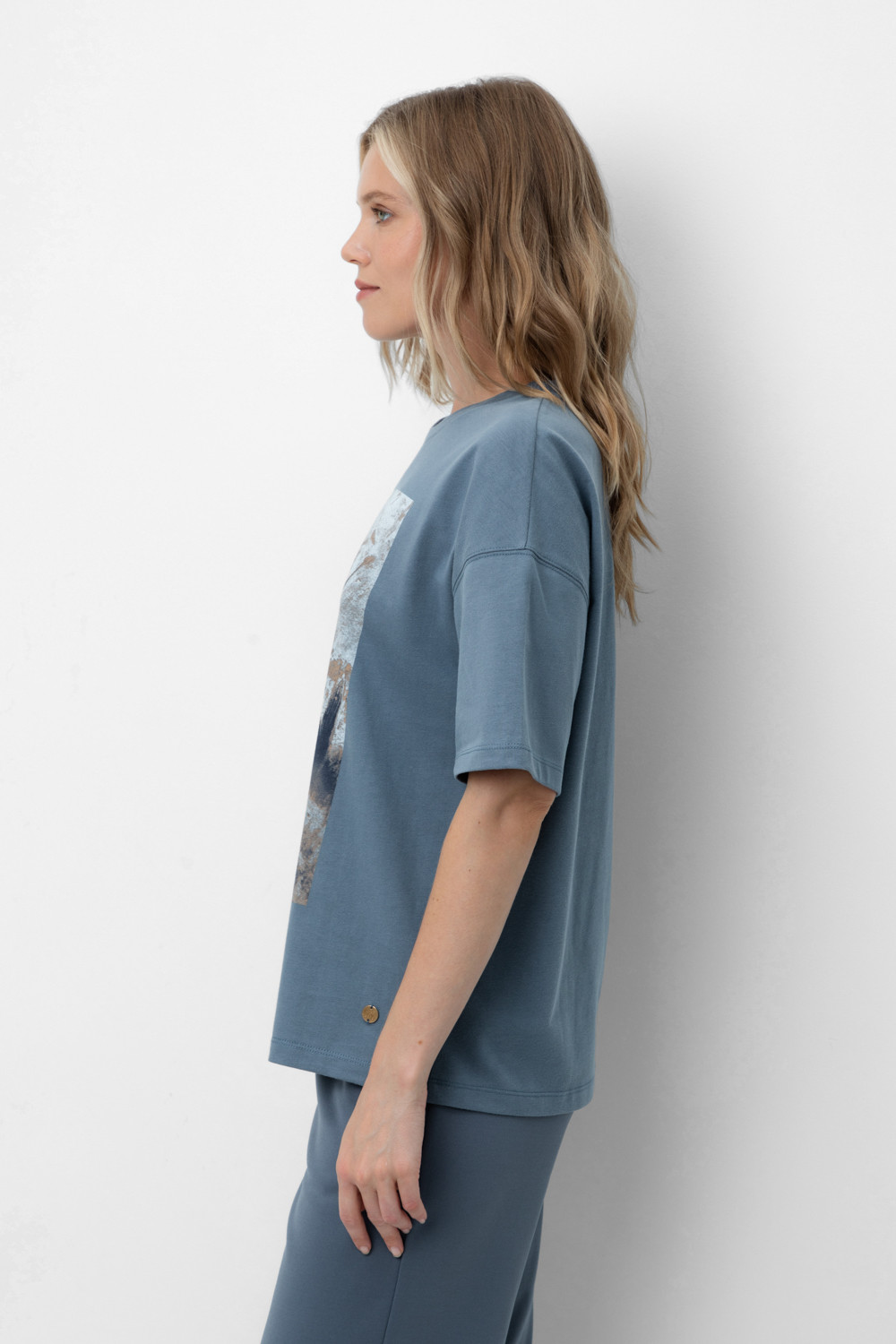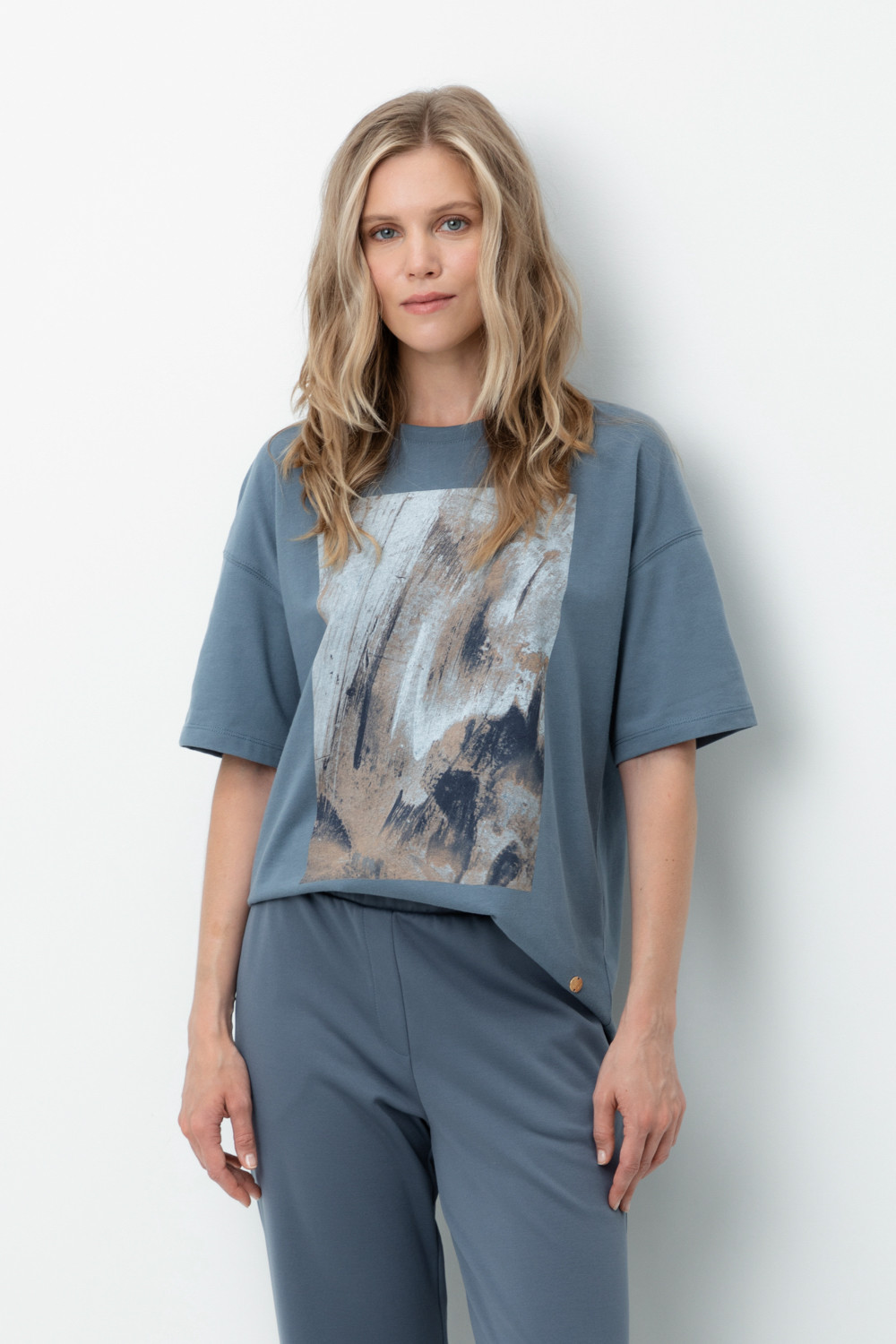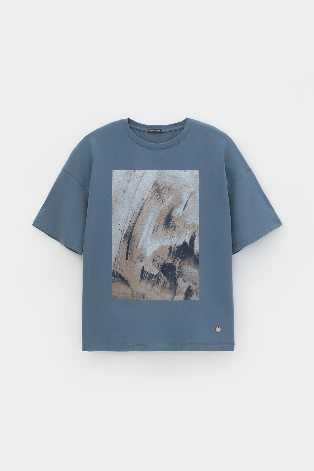 Женская футболка из длинноволокнистого гребенного хлопка с принтом.