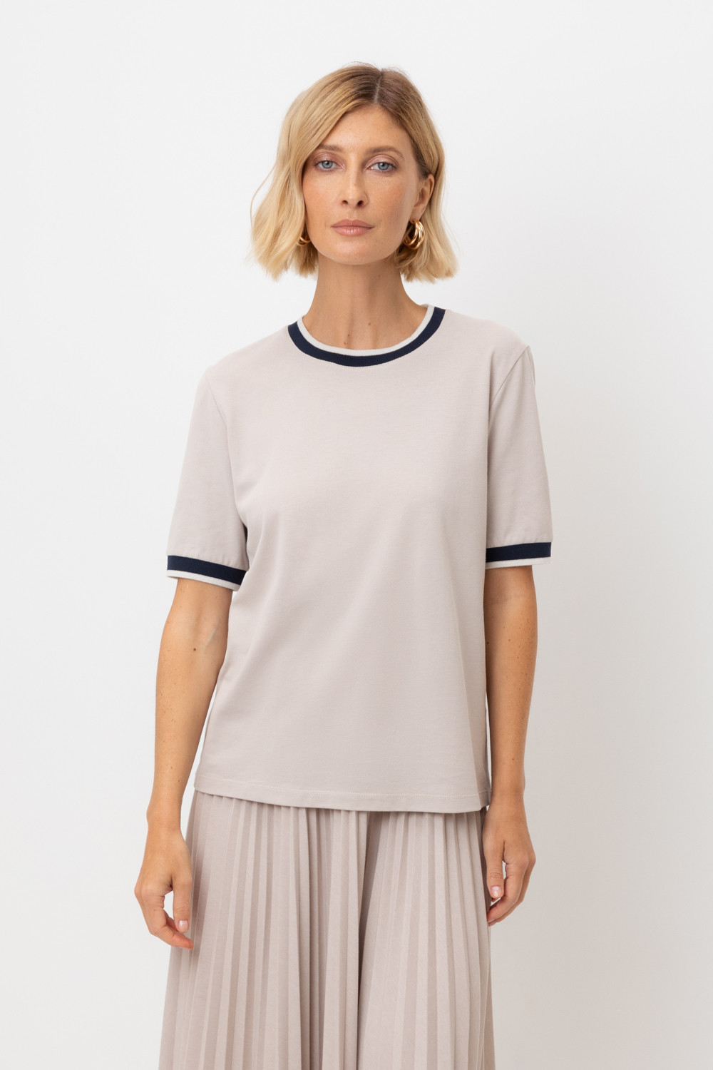 Футболка, изготовленная из 100% хлопка в переплетении пике. Дарит ощущение комфорта и легкости. Серо-бежевый цвет легко комбинируется с различными элементами гардероба, создавая универсальные образы. Вязаный воротник и манжеты, выполненные с особым вниманием к деталям, придают изделию аккуратный и завершенный вид.