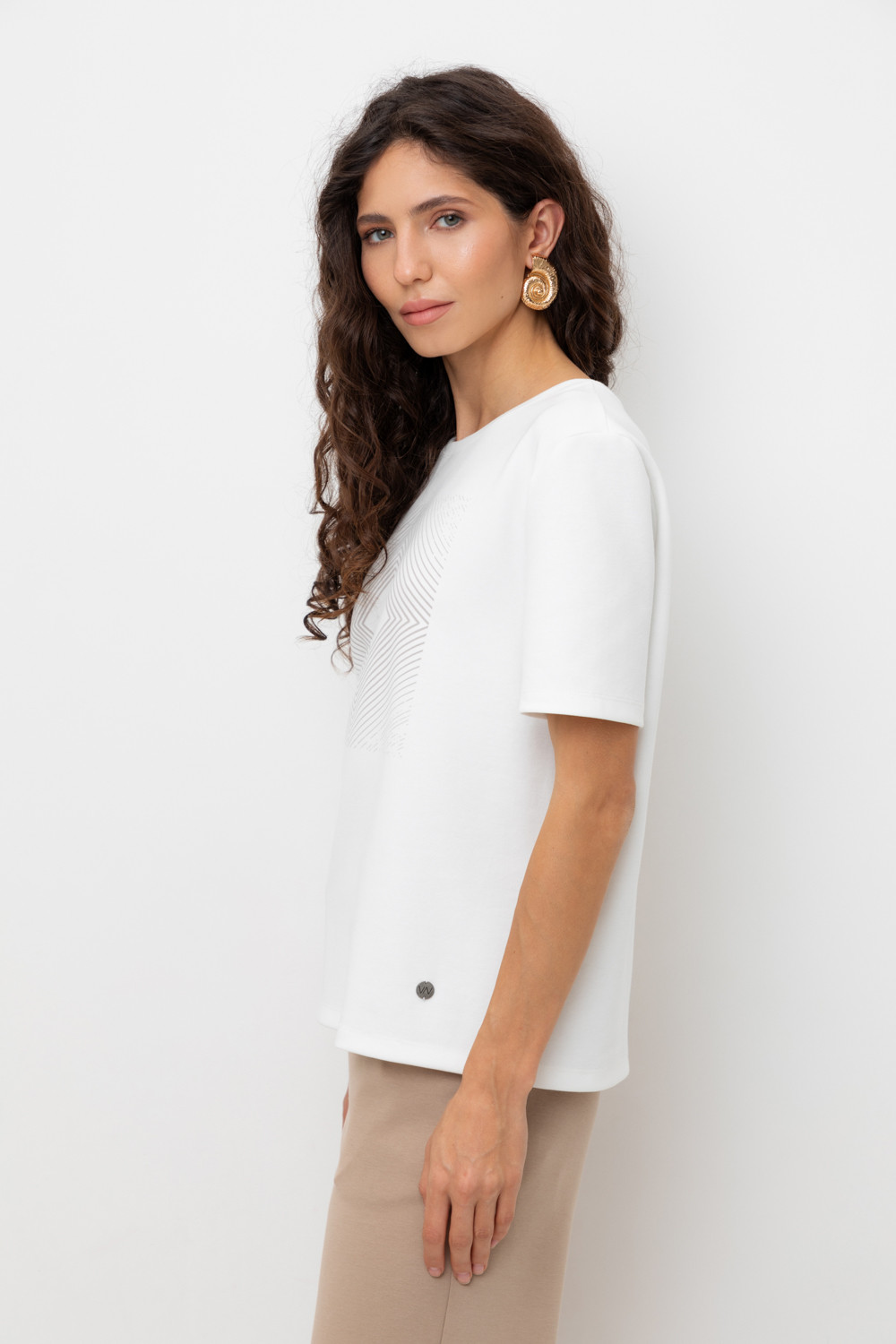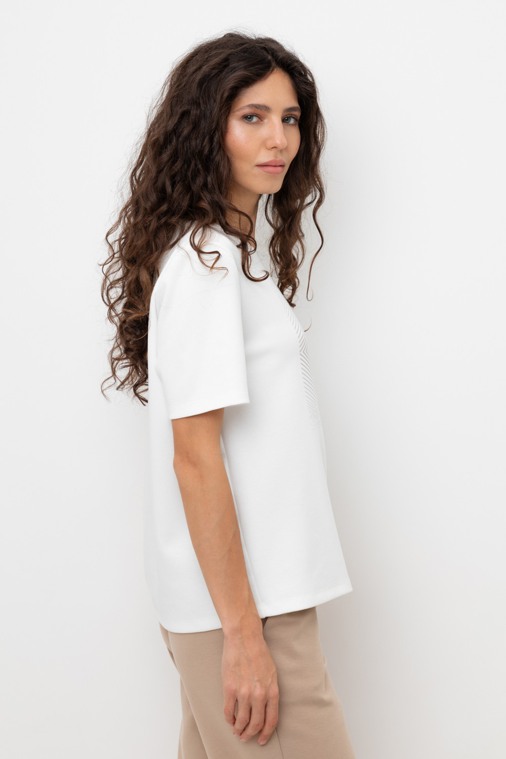 Футболка прямого силуэта, изготовленная из премиального трикотажного полотна DOUBLE FACE. Мягкий на ощупь трикотаж создан из высококачественной гребенной пряжи. Принт выполнен из водных красок, что обеспечивает устойчивость к многократным стиркам.