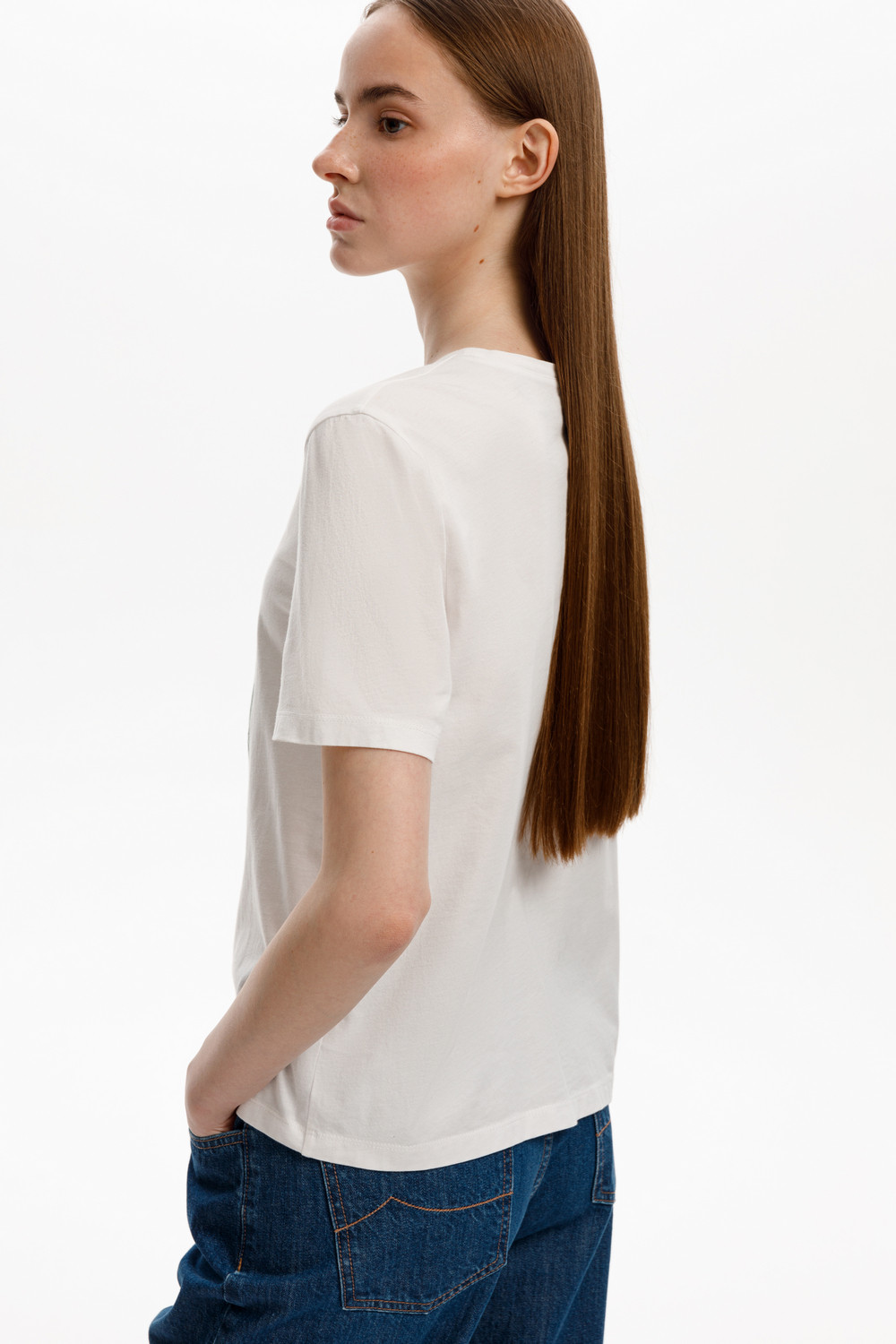 Футболка прямого силуэта из высококачественного гребенного хлопка. Мягкий на ощупь принт выполнен из водных красок, что обеспечивает устойчивость к многократным стиркам, а его дизайн добавляет летнего настроения.