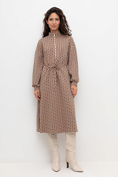 Платье с кулиской из плотного гладкого трикотажа интерлок с застежкой на молнию. Кулиска по линии талии подчеркивает женственность пропорций. Шнурок с наконечниками для утяжки служит украшением. Спущенное плечо придает изделию свободный силуэт.