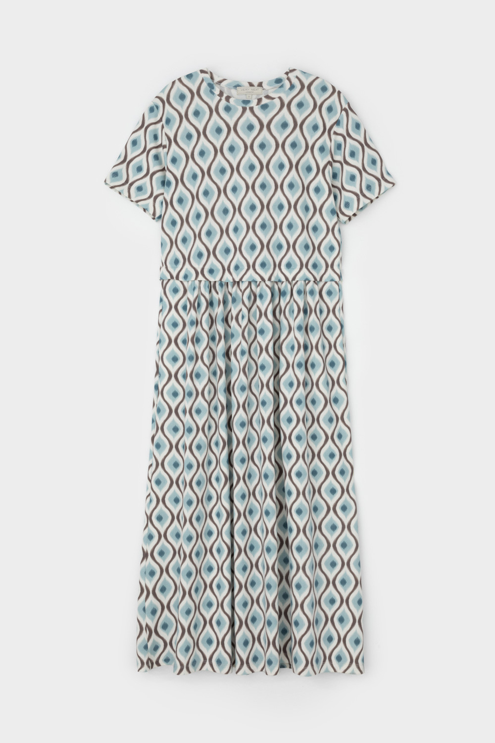 Летнее платье, изготовленное из премиального трикотажного полотна DOUBLE FACE. Мягкий на ощупь трикотаж выполнен из высококачественной гребенной пряжи, а его дизайн на основе восточных мотивов добавляет летнего настроения. Свободный силуэт, наличие боковых карманов, придают изделию спортивный и одновременно романтический стиль.