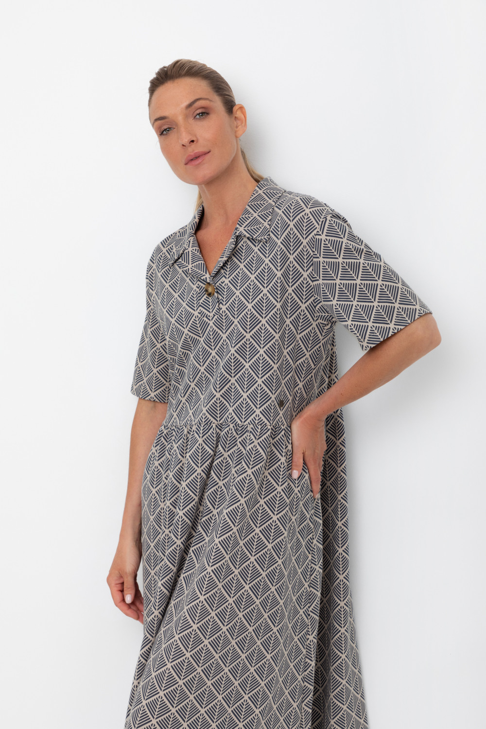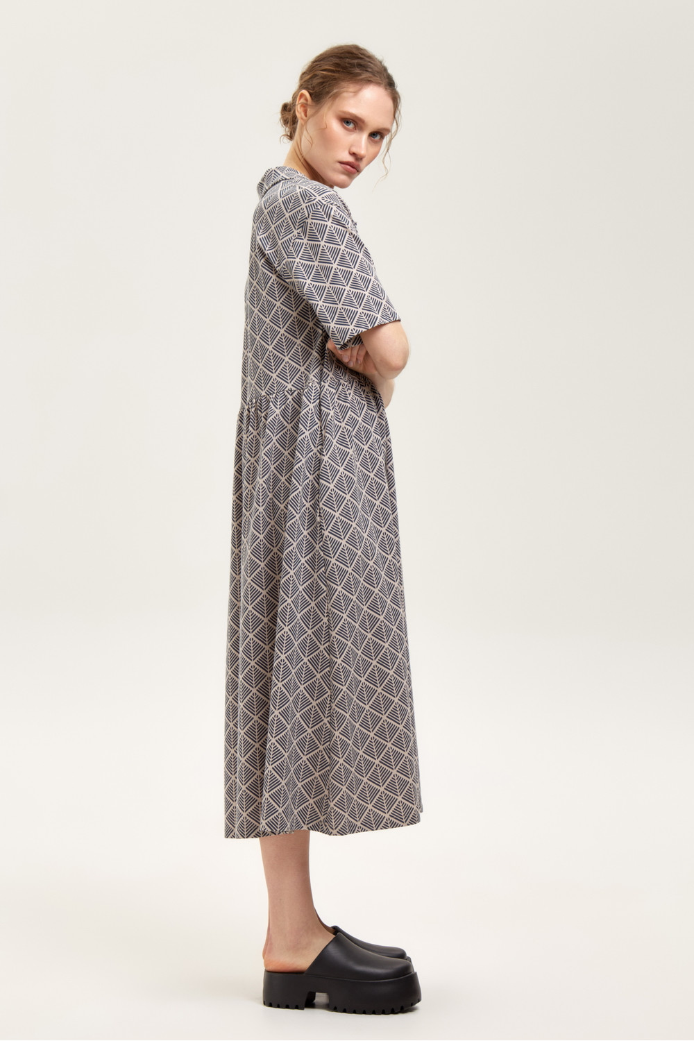 Летнее платье в стиле поло выполненное из премиального трикотажа пике. Свободный силуэт, наличие боковых карманов и геометрический рисунок придают изделию спортивный и одновременно романтический стиль. 100% хлопок в составе обеспечивает комфорт в жаркую погоду.