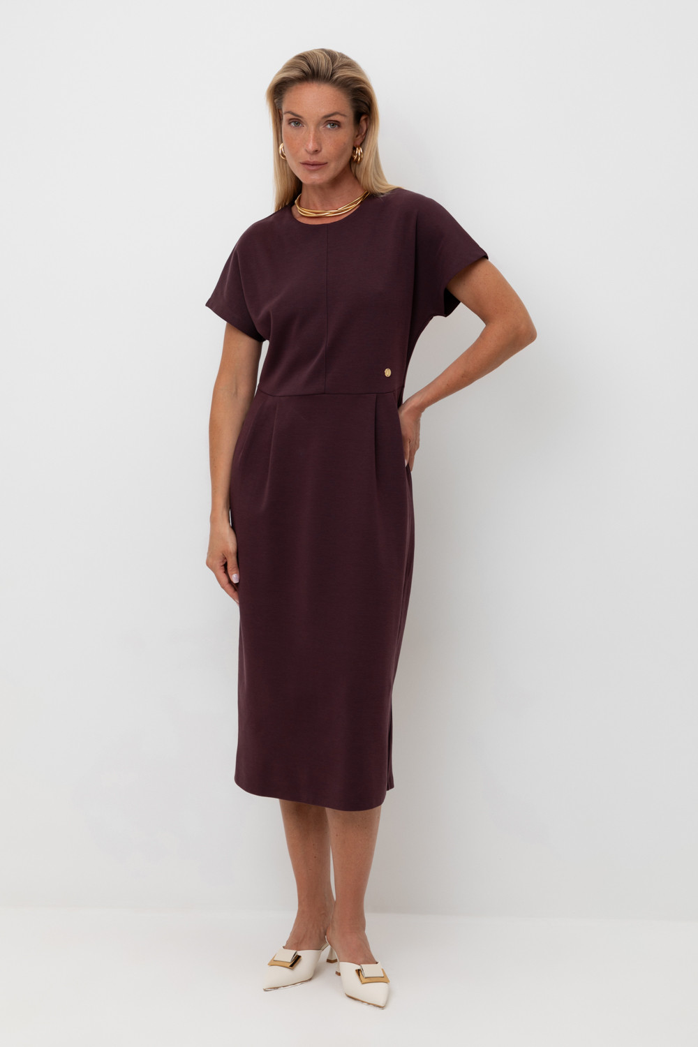 Классическое платье-футляр приталенного силуэта. Цельнокроенный рукав и отсутствие застежки делает изделие еще более удобным, а трендовый цвет станет основой для стильных образов. Платье изготовлено из премиального трикотажа DOUBLE FACE.