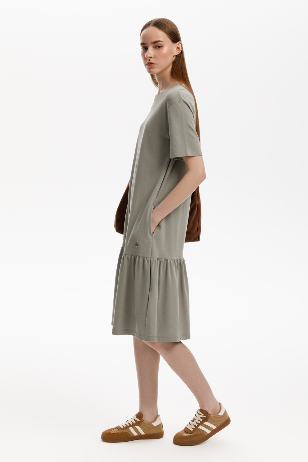 Летнее платье, изготовленное из 100% хлопка дарит невероятное ощущение комфорта и легкости. Спущенное плечо и карманы в боковых швах создают спортивный образ.