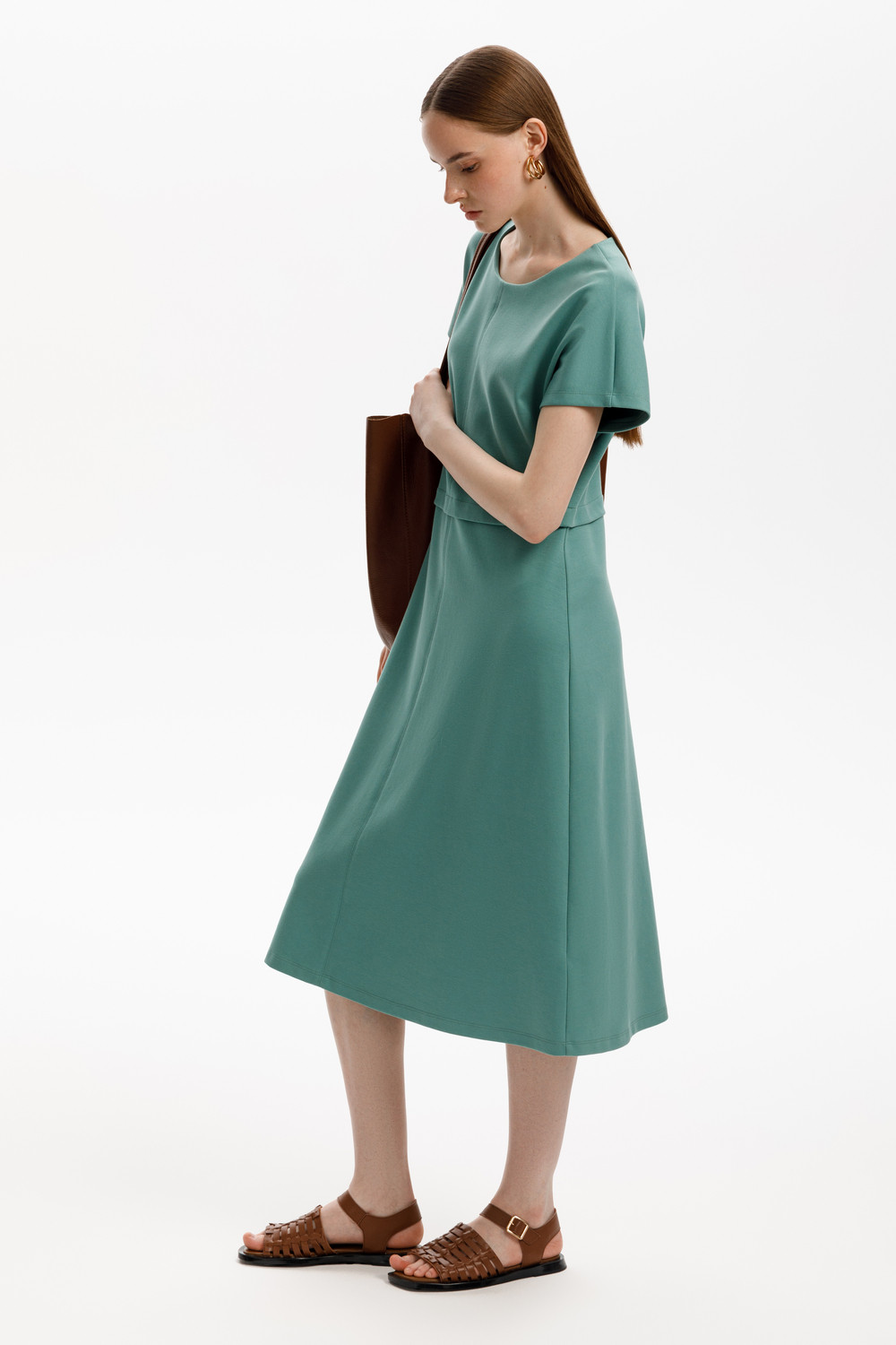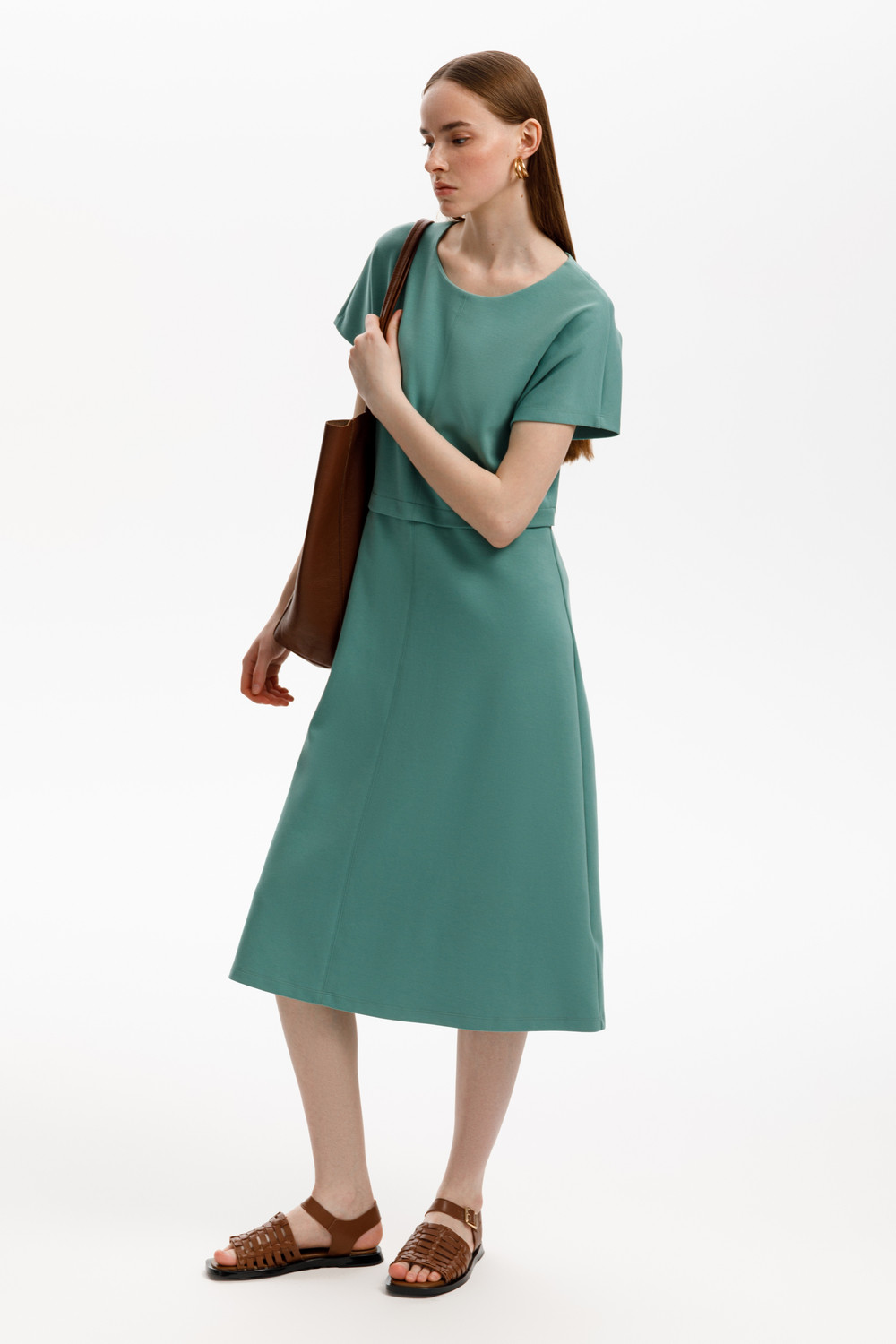 Классический силуэт летнего платья, изготовленного из премиального трикотажа DOUBLE FACE, дарит невероятное ощущение комфорта и легкости. Спущенный цельнокроеный рукав придает изделию романтический образ.