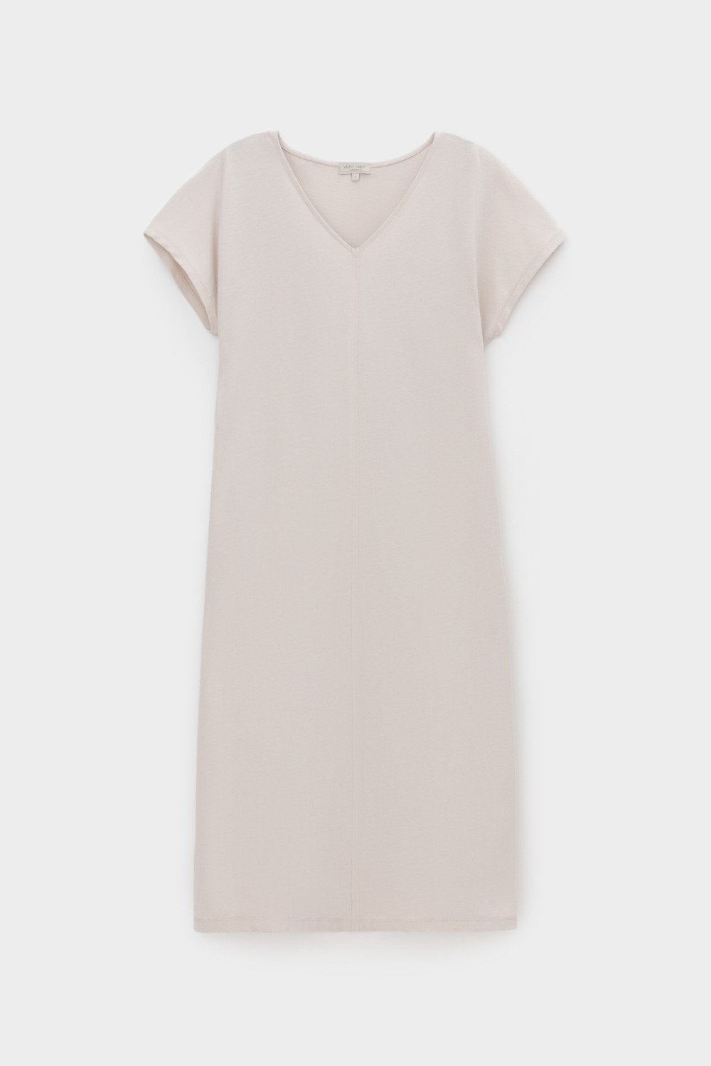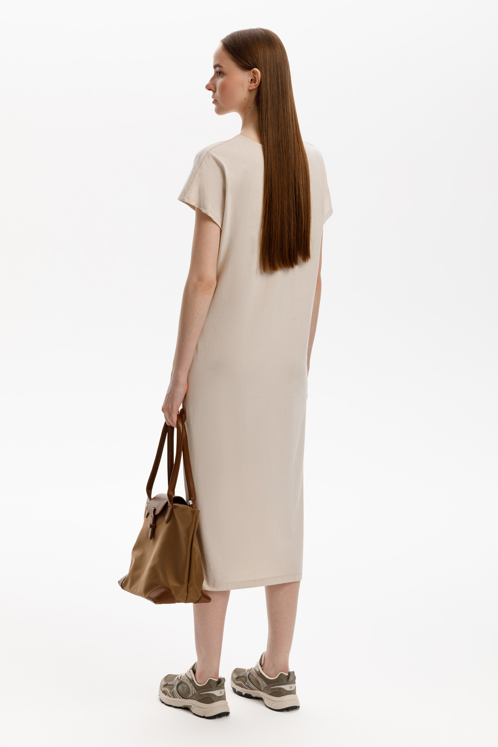 Лаконичное трикотажное платье из 100% мягкого хлопка. Наличие боковых карманов придают изделию функциональность.