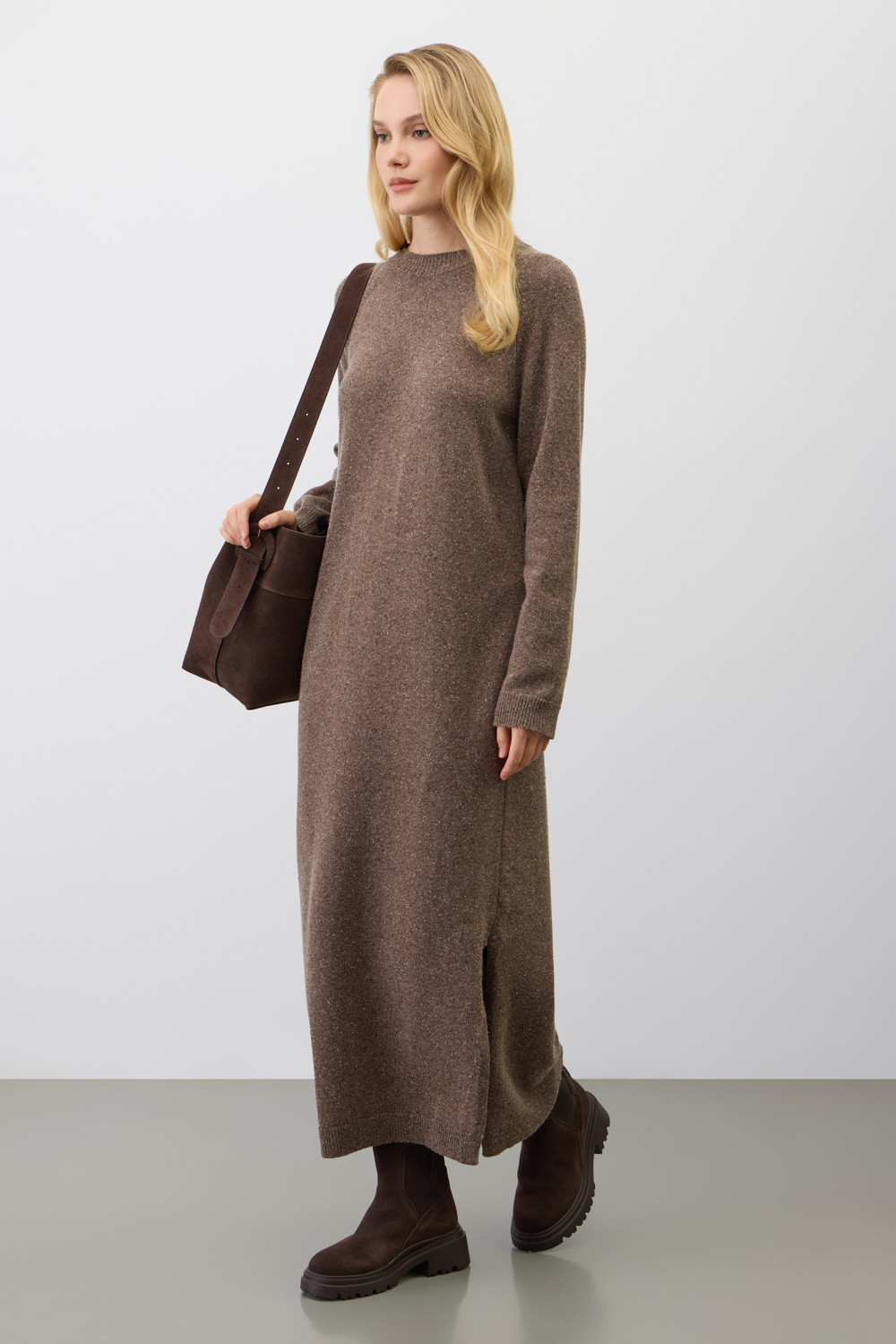 Платье из уникальной коллекции премиальных изделий, выполненных из итальянской шерсти, включает в себя мягчайшую шерсть мериноса и натуральный шелк. Это идеальное сочетание обеспечивает комфортное прилегание к телу, отличную терморегуляцию и воздухопроницаемость. Гладкая текстура с изысканными вкраплениями выглядит особенно стильно и современно.