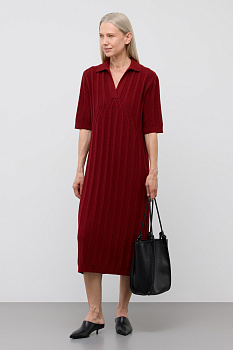 Платье-поло, изготовленное из австралийского мериноса. Натуральная шерсть обеспечивает комфорт, отличную терморегуляцию и высокую воздухопроницаемость. Элегантный воротник в стиле поло и короткие рукава формируют современный и универсальный силуэт, идеально подходящий как для офисных встреч, так и для прогулок по городу.