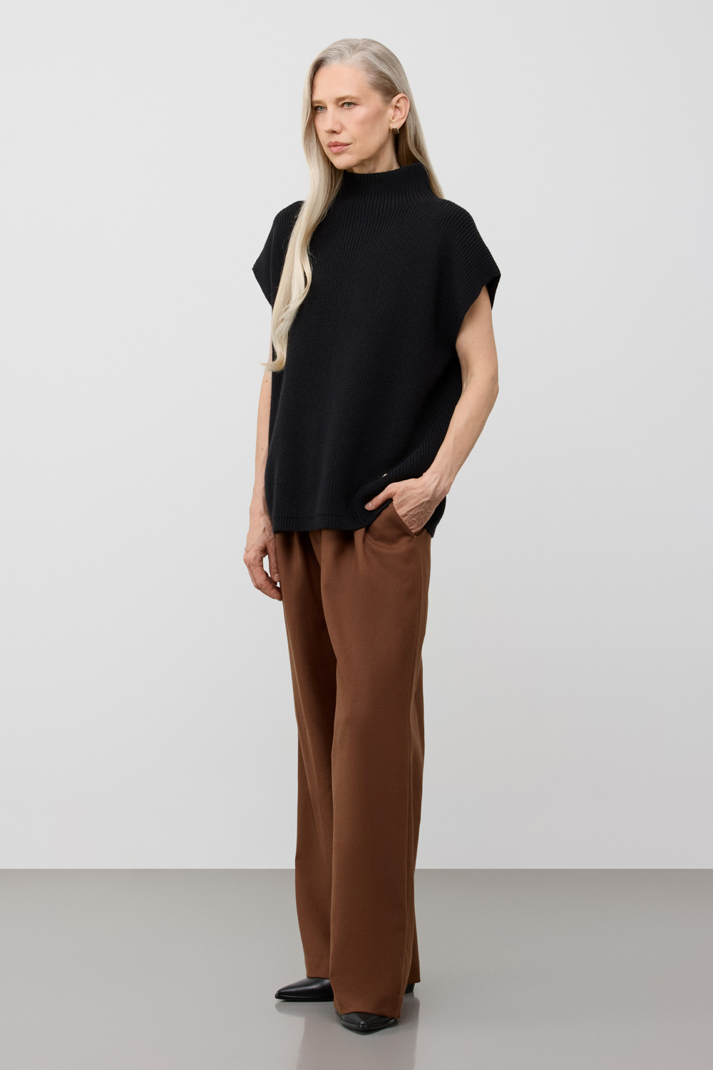 Жилет, изготовленный из высококачественной пряжи. Уникальное сочетание шерсти и акрила дарит ощущение уюта, приятно прилегает к телу, является гипоаллергенным и отлично сохраняет форму. Рельефная текстура придает жилету современный вид, идеально сочетающийся с различными стилями одежды.