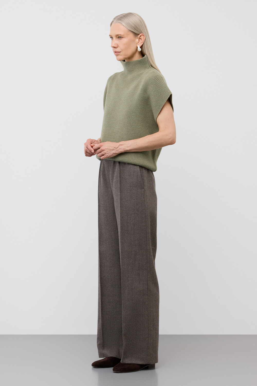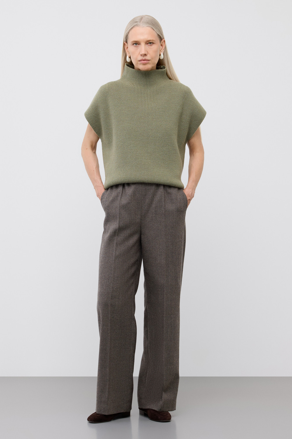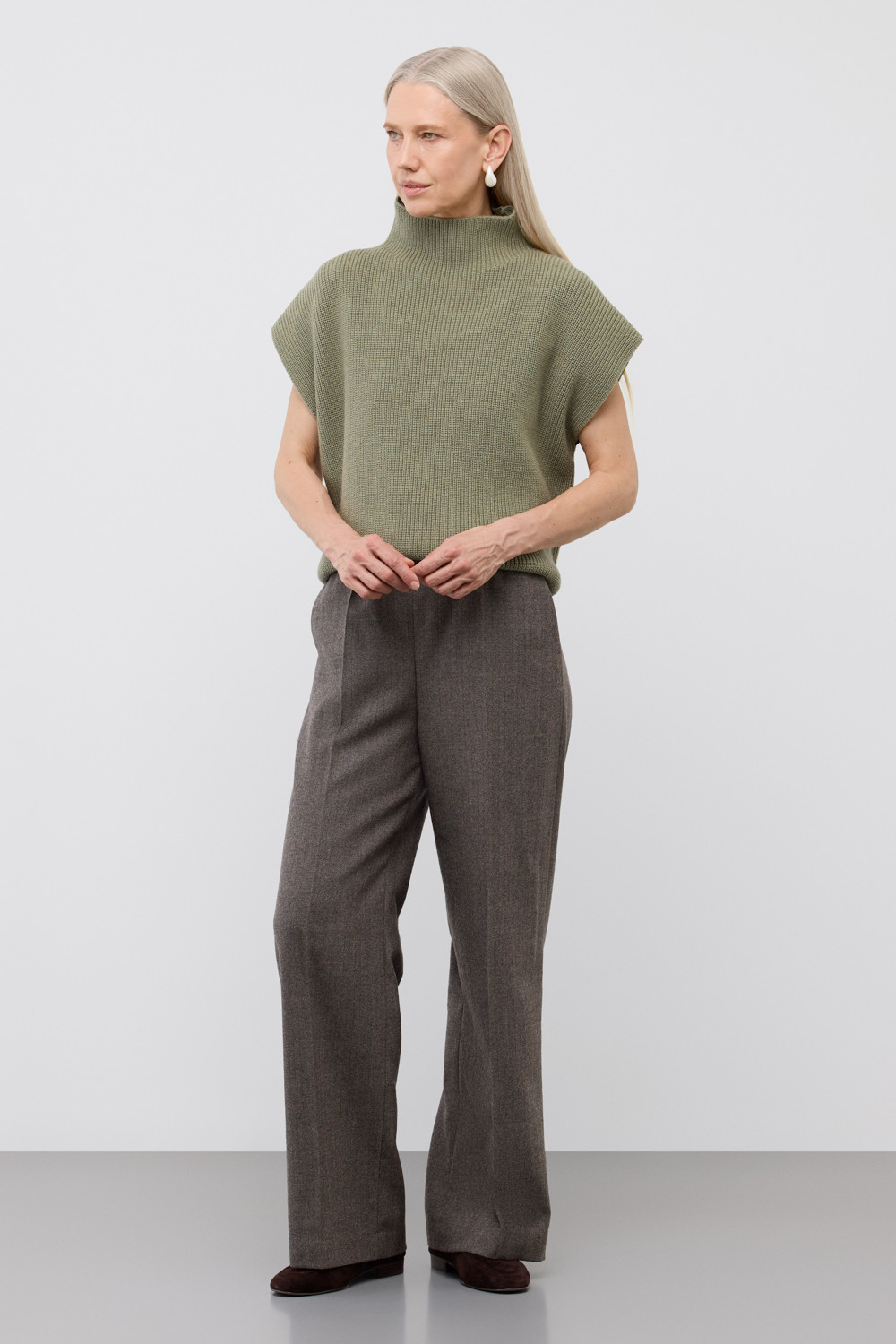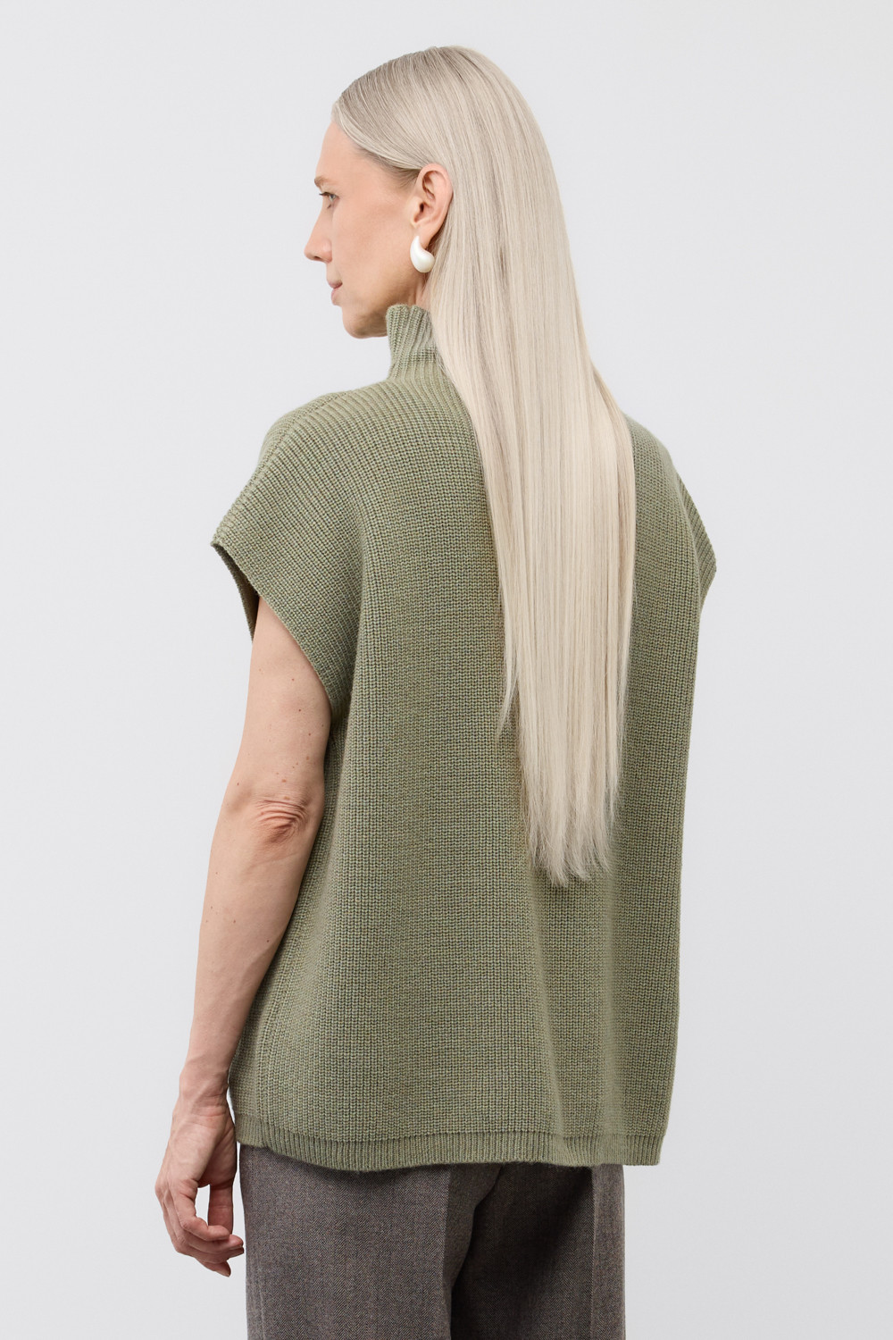 Жилет, изготовленный из высококачественной пряжи. Уникальное сочетание шерсти и акрила дарит ощущение уюта, приятно прилегает к телу, является гипоаллергенным и отлично сохраняет форму. Рельефная текстура придает жилету современный вид, идеально сочетающийся с различными стилями одежды.