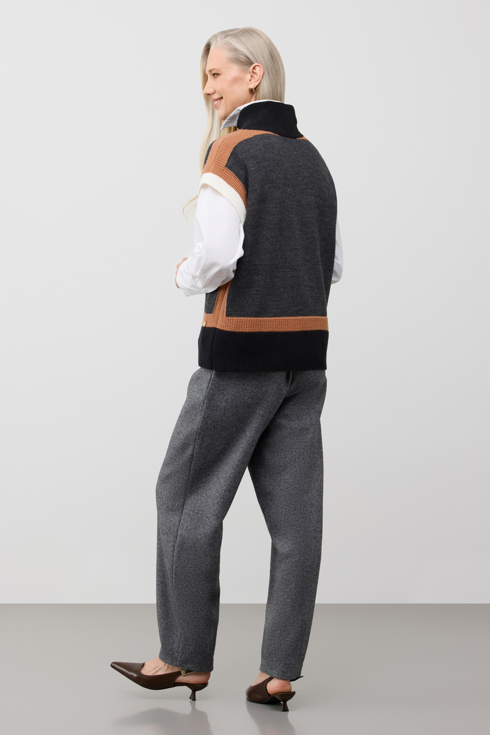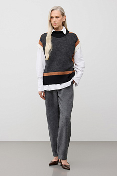 Жилет, обладающий мягкой текстурой, создан из высококачественной пряжи. Особая комбинация шерсти и акрила создает атмосферу комфорта, а также обеспечивает приятное прилегание к телу. Состав является гипоаллергенным и способствует отличному сохранению формы изделия.