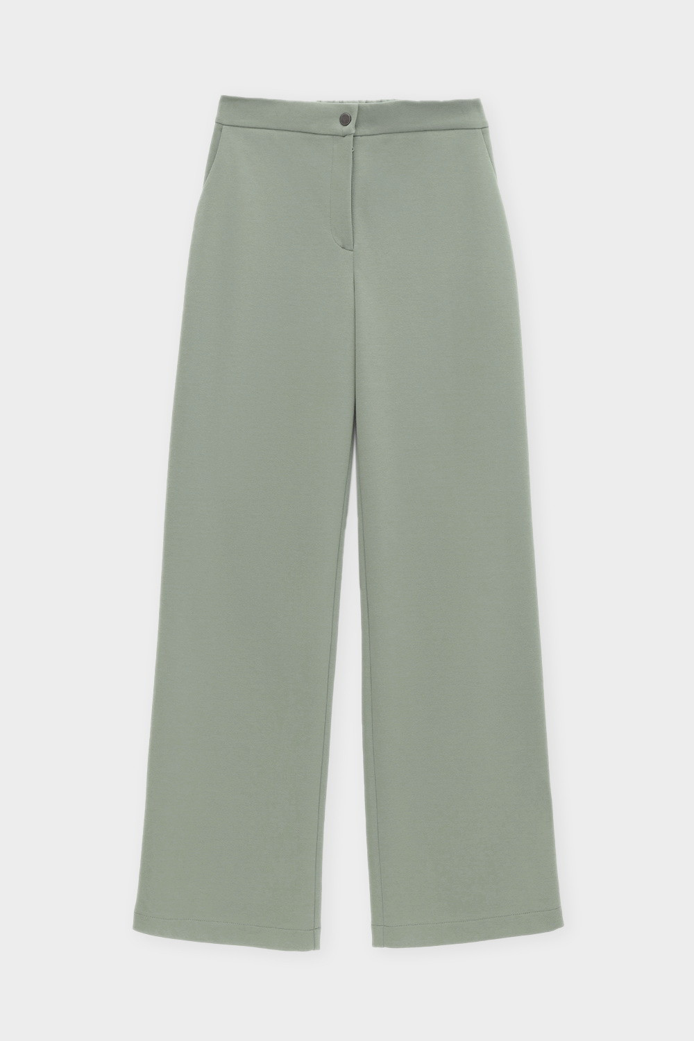 Свободные женские брюки с боковыми карманами из плотного гладкого трикотажа интерлок. Застегиваются на молнию и кнопку.Низ обработан плоскими швами.