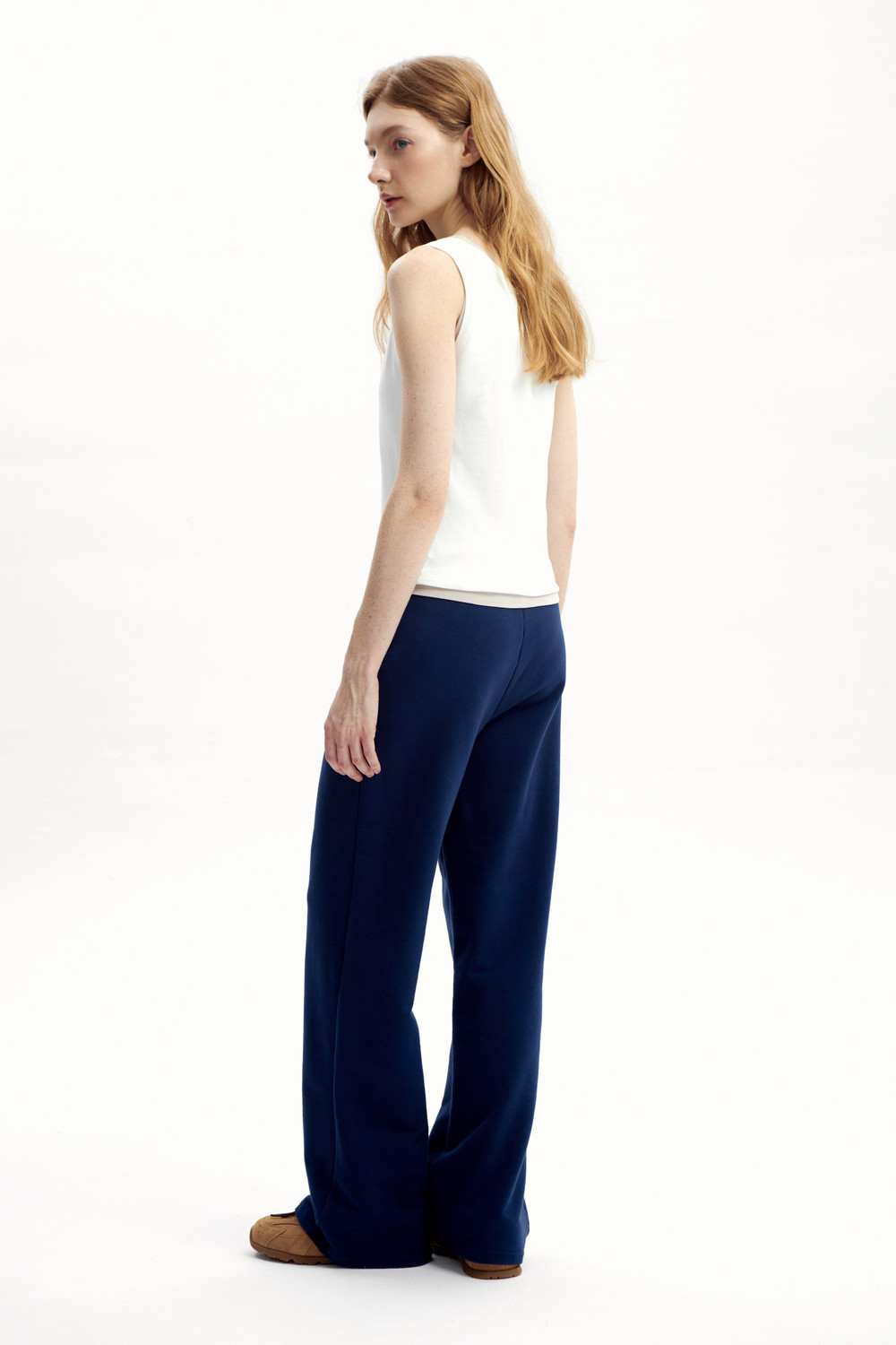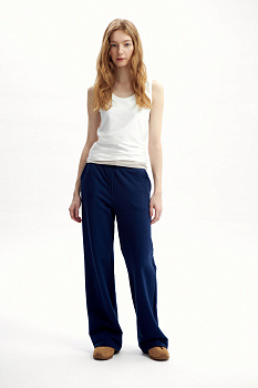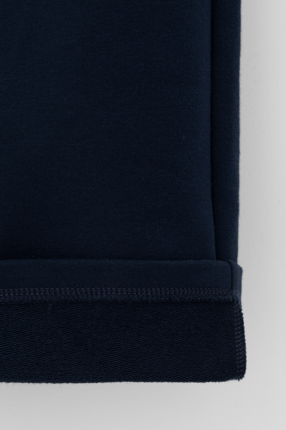 Трикотажные брюки из высококачественного гребенного футера с эластаном. Незаменимая классика в летнем гардеробе. Глубокий чернильный цвет является основой всех морских коллекций.